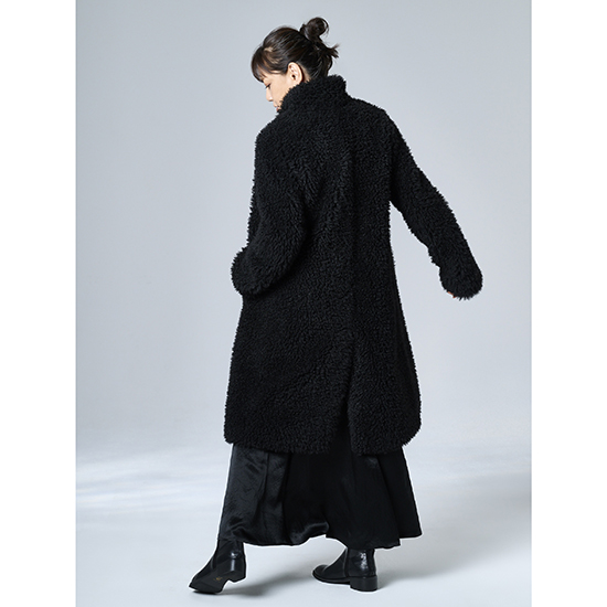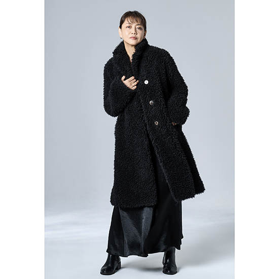 ボリュームのあるテーラードカラーで首周りも温かです。膝の隠れる丈はロングブーツとの相性も良く、パンツとのバランスもOK。