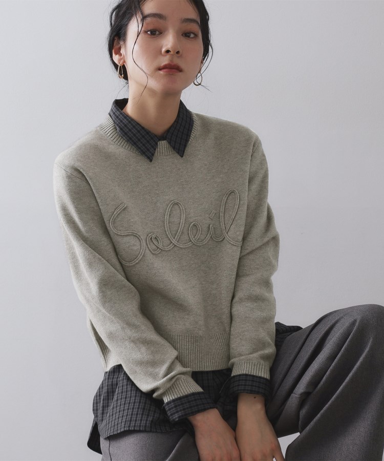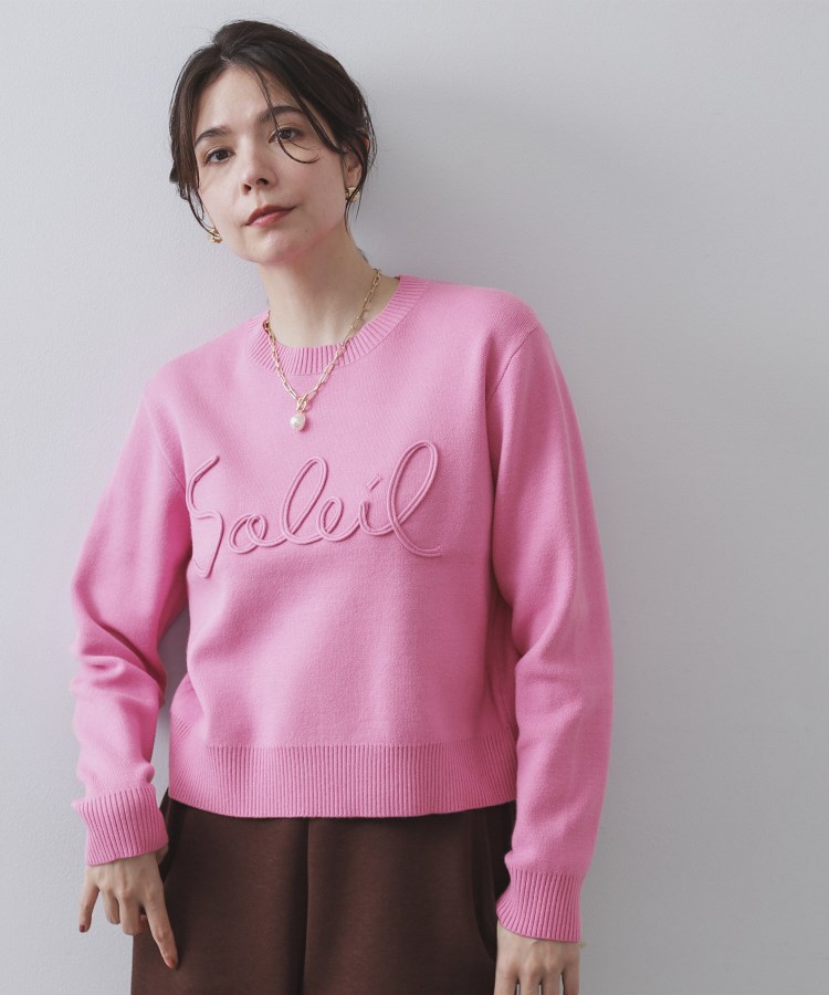 チェーン刺繍ロゴがキャッチーなニットプルオーバー【デザイン】・立体的なニットのチェーン刺繍ロゴをポイントにしたニットプルオーバー。・コンパクトめなボディシルエットとややショート丈のバランスも◎・1枚着にも、アウターインにもポイントになるロゴニットプルオーバーです。【素材】・柔らかなタッチの杢調ニット素材を使用。・マシンウォッシャブルでご自宅でのお洗濯も可能。------------------【C(シー) OPAQUE.CLIP】「PLAYFUL FEMININE」をキーワードに、天然素材と美しくポジティブなカラー、ワクワクするようなディティールや、ミックス感のあるスタイルなどファッションの楽しさを詰め込んだ新レーベルです※照明の関係により、実際よりも色味が違って見える場合があります。また、パソコン・スマートフォンなどの環境により、若干製品と画像のカラーが異なる場合もございます。