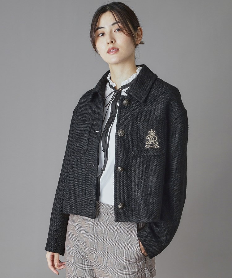 【オリジナルワッペンがポイント!ショートレングスのロービングブルゾン】●秋の初めから羽織れるヘアリー感●意匠感のあるドレステリアオリジナルワッペン●ショート丈でトレンド感のあるスタイリングが完成●こだわりトラディショナルなムードとトレンド感のあるシルエットにこだわったブルゾン。ステンカラーできちんと感を保ちながら、ほんのりとAラインのショートレングスに仕上げる事で、ボリュームボトムとも相性の良いアイテムです。秋の初めから着用でき、シャツインナーやタートルと合わせやすいのでシーズン中長く着用する事が出来ます。左胸のワッペンは、糸使いや刺繍の膨らみ感にもこだわったドレステリアオリジナル柄。スタイリングを格上げする、特別感のある一着に仕上げています。●素材秋の初めから着用できる様、さらっとしたタッチとザックリした凹凸のあるツイード素材をセレクトしました。ウールの糸にブライトレーヨンをカバーリング(巻く)する事で生まれるソフトな風合いと光沢感が魅力で、グレーは色のミックス感が美しく、ブラックはソリッドカラーなので凹凸が際立っているもの特徴です。※照明の関係により、実際よりも色味が違って見える場合があります。また、パソコン・スマートフォンなどの環境により、若干製品と画像のカラーが異なる場合もございます。