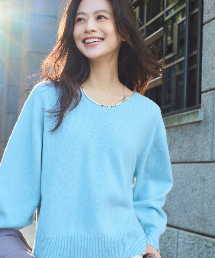 【洗える/カシミヤ混】ミドルゲージVネックニット