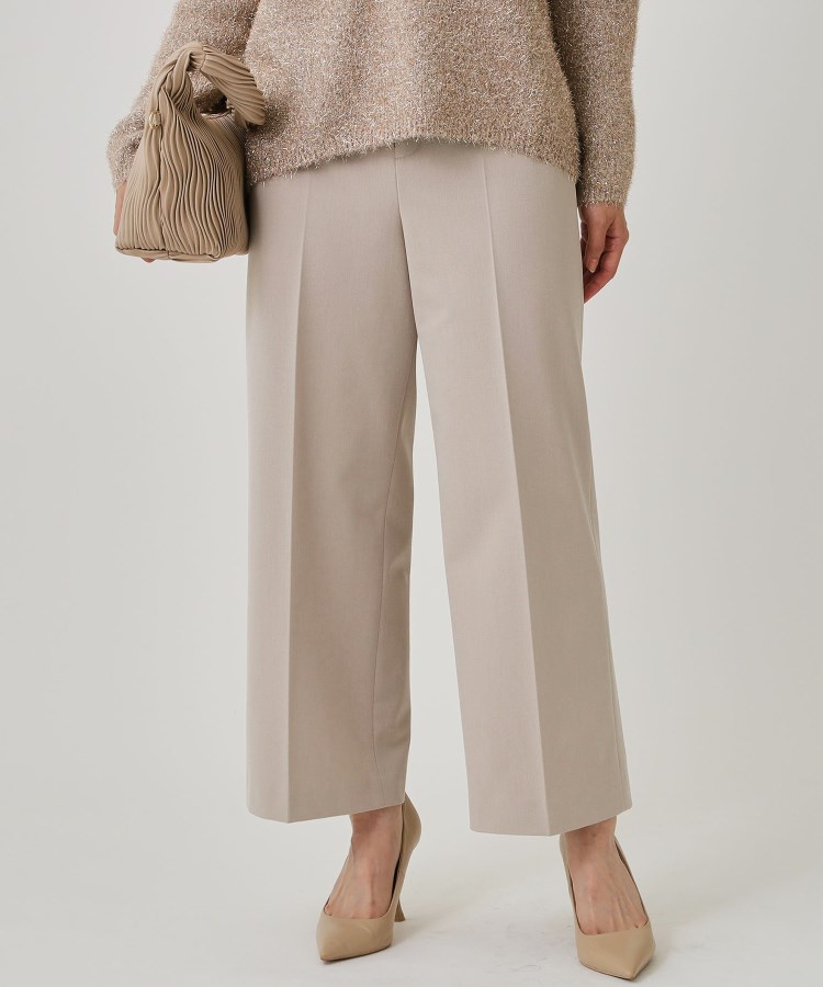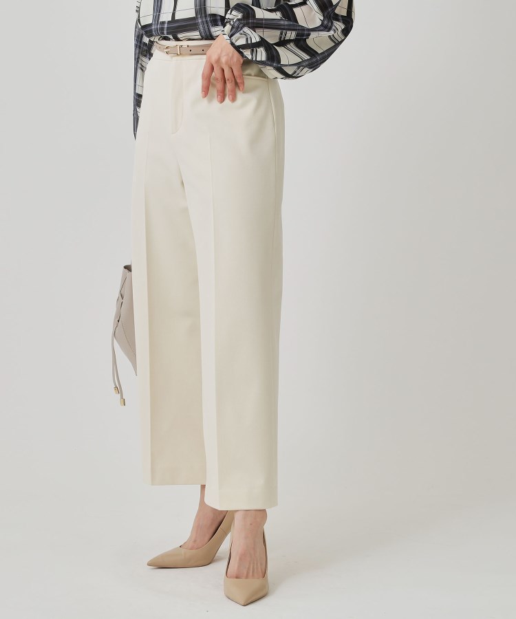 〇デザインポイントクードシャンス定番のセンタープレスのストレートワイドパンツです。従来よりもヒップ周りのツッパリを改善、前ウエストのダーツをなくしスッキリさせた進化版になります。後ろウエストに平ゴム入りで程よく伸びを感じ、ストレスフリーで着て頂けます。003カラー のみ裏付きです。同型でグレンチェックも展開します。〇素材ポイントレーヨン混でなめらかな表面感が特徴。キックバックの良い素材です。【仕様】・ポケット数:前×2・前ファスナー・オフホワイト(003)のみ裏地あり※オフホワイト(003)はやや透け感があります。※照明の関係により、実際よりも色味が違って見える場合があります。また、パソコン・スマートフォンなどの環境により、若干製品と画像のカラーが異なる場合もございます。