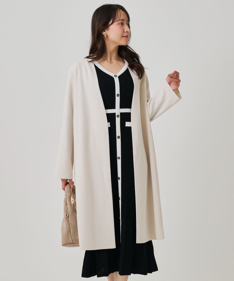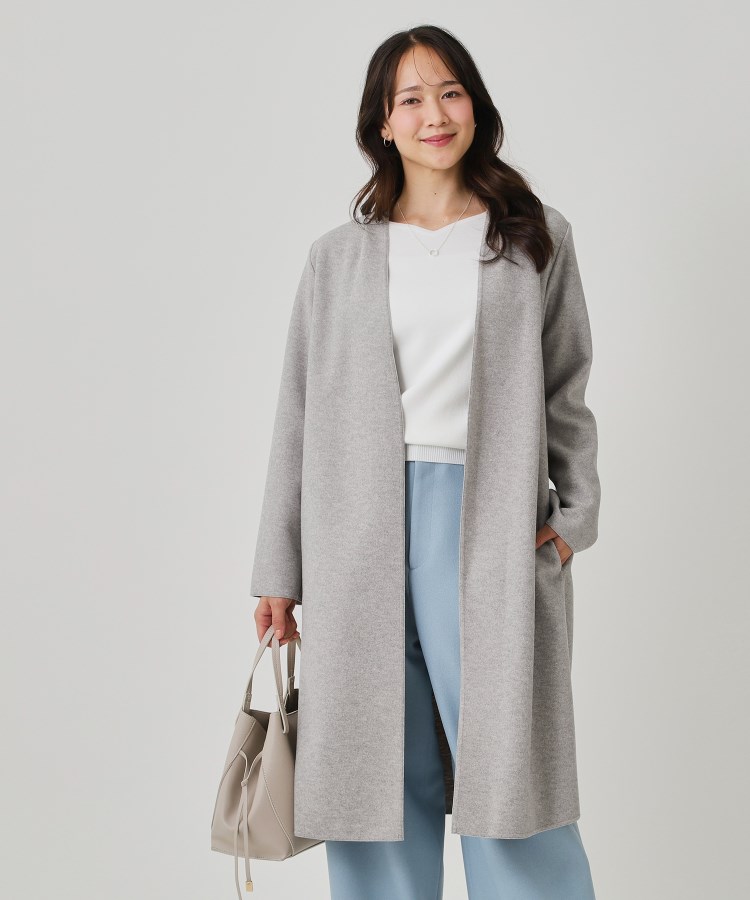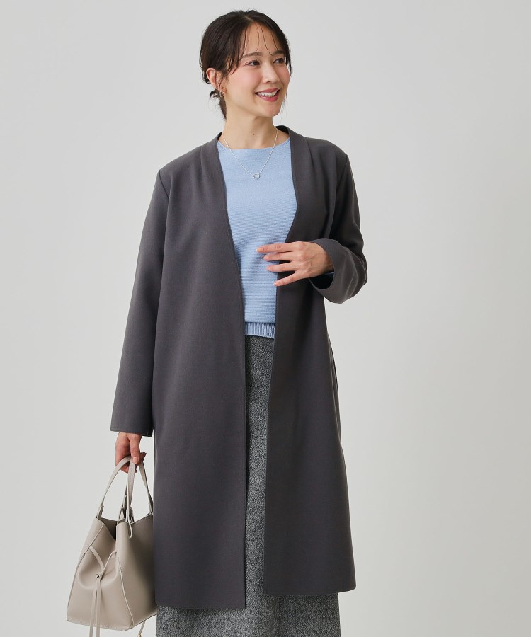 〇デザインポイントコートよりも気軽に、カーディガンよりもきちんと見せるコーディガン。ジャージ素材なので伸縮性があり軽い着心地です。クードシャンスらしいストレートのIラインシルエットで細見えに拘りました。前端と袖口は、ステッチを入れた断ち切り仕様で軽い仕上がりに。ぱっと羽織りやすい着流しタイプなのでカジュアルにもキレイ目にもシーンを選ばずスタイリングしやすいアイテムです。便利なシームポケット付きです。〇素材ポイントウール見えで温かみのある表面感とふくらみのある素材が特徴。ダブルジャージにニードルパンチを施したとても軽くソフトな風合い。ジャージならではの伸縮性もあり重ね着するシーズンも軽く羽織れて温かいです。【仕様】・ポケット数:横×2・裏地なし※照明の関係により、実際よりも色味が違って見える場合があります。また、パソコン・スマートフォンなどの環境により、若干製品と画像のカラーが異なる場合もございます。