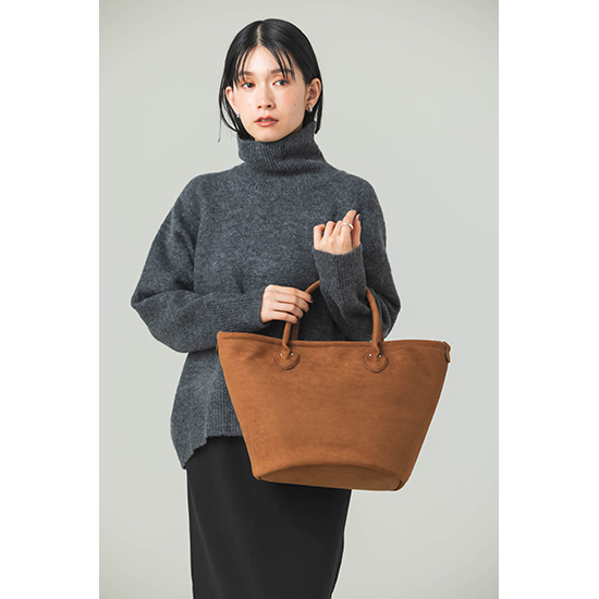 スエード調のリッチな風合いが魅力のバケツ型ビッグトート。