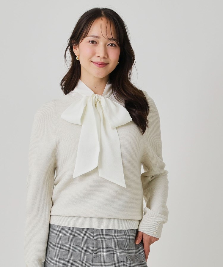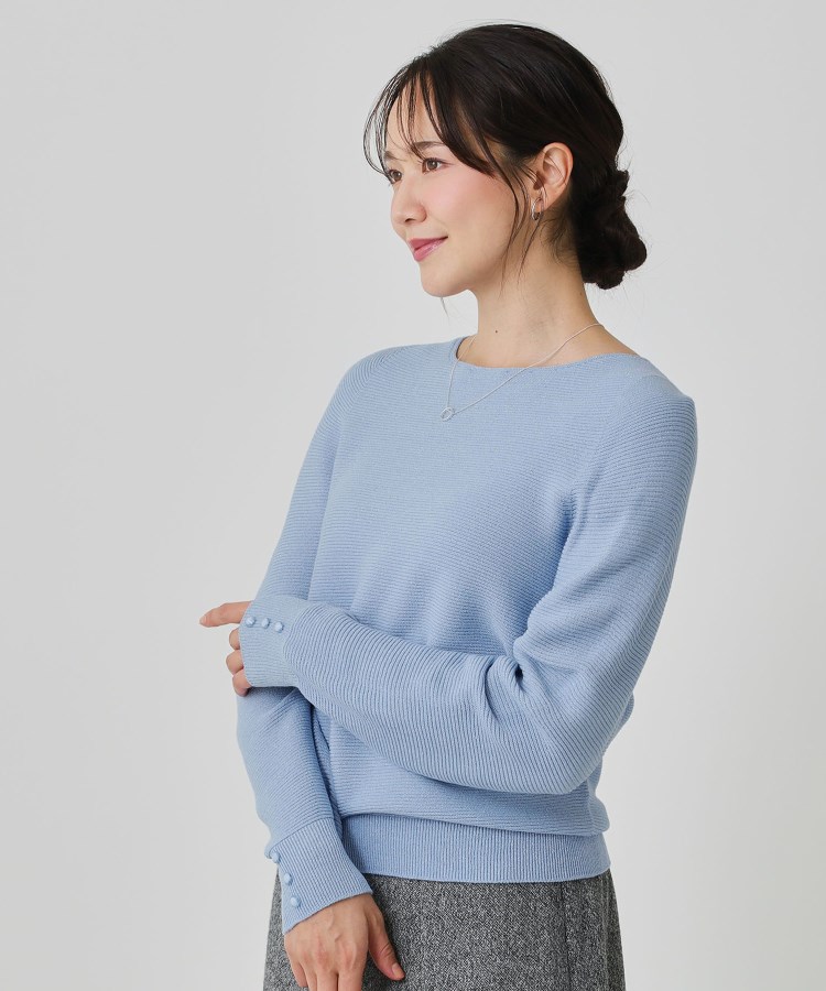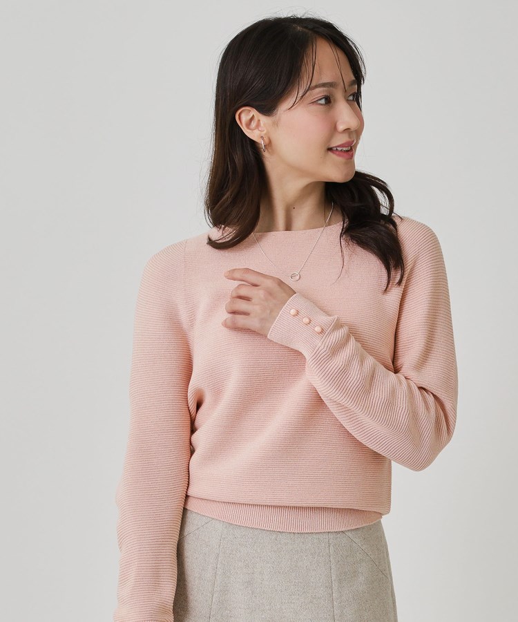 〇デザインポイントガーター編みの凹凸感と、繊細で上品なラメのさりげない表情感が魅力のニットトップス。無地感覚のコーデが楽しめる、着回し◎優秀トップスです。お袖は程良いドルマンでフォルムにニュアンスのあるデザインになっています。袖口をプッシュアップするとお袖のボリュームが増し、抜け感が出ます。ホールガーメント機で縫い代の無い編み方をしているため縫い代のゴロツキが無く、着心地の良さも魅力です。無地のスカートにもプリントのスカートとのコーデはもちろん、ワイドパンツやタックテーパードパンツでスッキリめのオフィスコーデにもおすすめです。〇素材ポイント軽さのあるストレート糸に細く上品に光るラメを撚糸したハイゲージの2x2ガーターの編地です。ハイゲージですが2×2ガーター編地は程よく肉感が出るため、秋~冬まで通して長く着て頂ける素材感です。※照明の関係により、実際よりも色味が違って見える場合があります。また、パソコン・スマートフォンなどの環境により、若干製品と画像のカラーが異なる場合もございます。