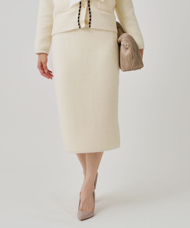 【手洗い可/セットアップ可】フェザーモールのニットスカート