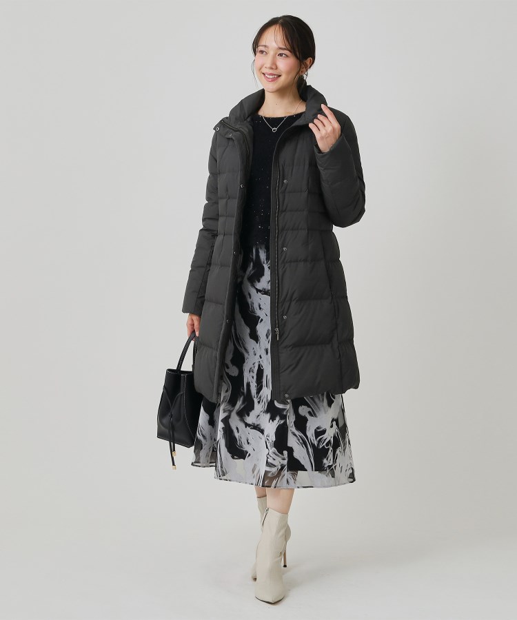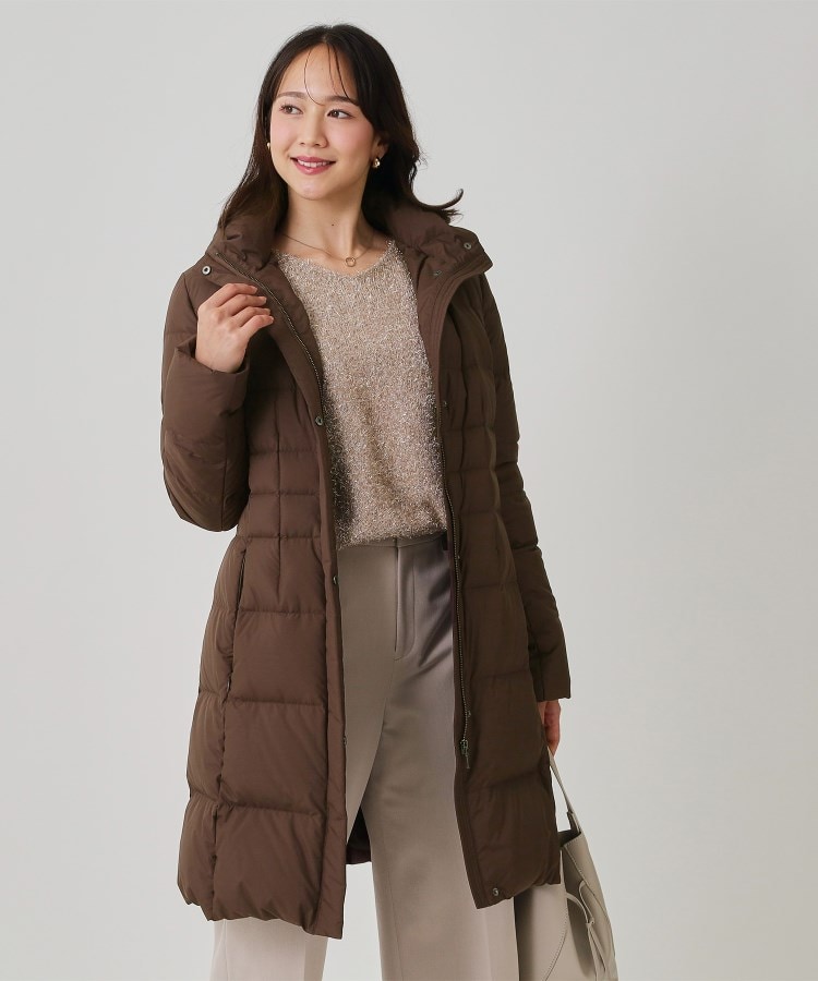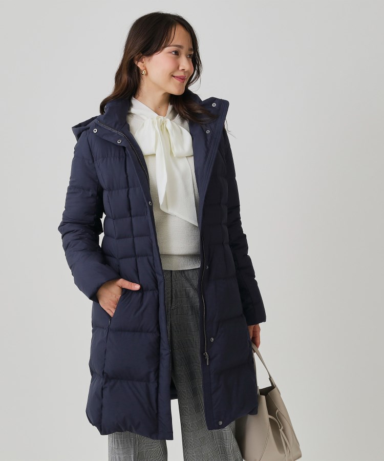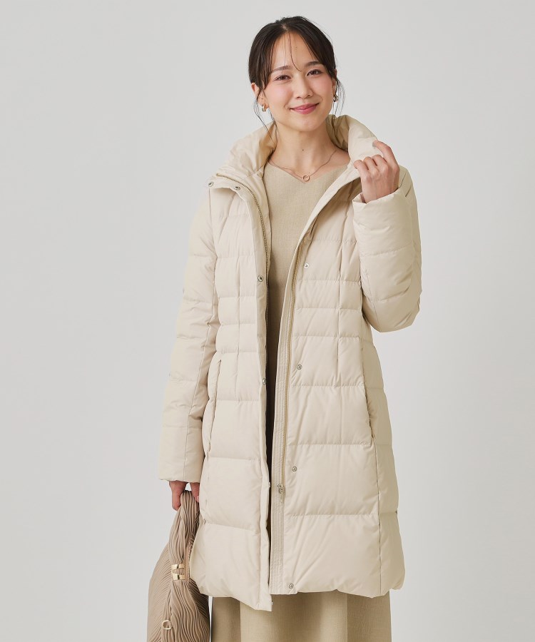 〇デザインポイントハイクオリティダウンを使用し、ウエストラインをきちんとマークしたシルエットに拘ったダウンコートです。三層構造なので軽さとしなやかさを十分に感じるダウンコートとなっています。高めのウエスト位置で横ステッチを入れ、スタイルアップ効果が期待できる工夫をしています。袖口の内側はリブをつけ、袋布にボア使用することで防寒性をアップしています。フードは取り外しが可能で、外すとスタンド衿のシャープな印象で着ていただけます。スラックスやテーラードパンツに合わせオフィスカジュアルにも使えます。ワンピースやスカートにロングブーツやパンプスを合わせると、フォーマル感がプラスされエレガントな雰囲気で着ていただけます。ご家庭で手洗いが可能なのもポイントです。〇素材ポイントフランス産ミュラー種ホワイトダックダウンを使用したダウンコート。FP800と非常に高い保温性を有するハイクオリティダウンです。抗菌防臭加工を施し、本体の素材には環境に配慮したリサイクル素材を使用しました。【仕様】・ポケット数:横×2・裏地あり※この製品は、抗菌防臭加工をしております。この効果は永久的ではありません。※照明の関係により、実際よりも色味が違って見える場合があります。また、パソコン・スマートフォンなどの環境により、若干製品と画像のカラーが異なる場合もございます。