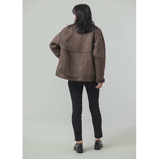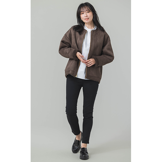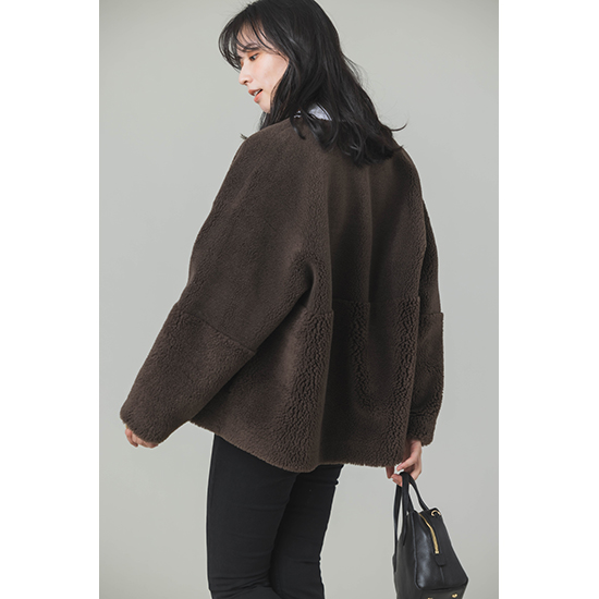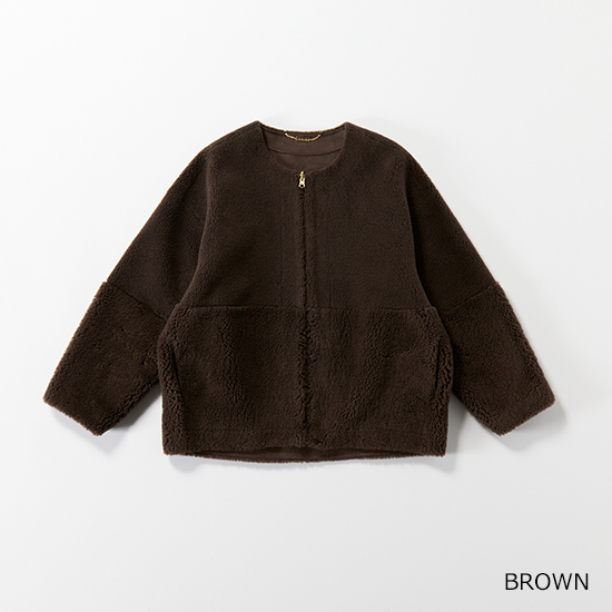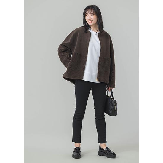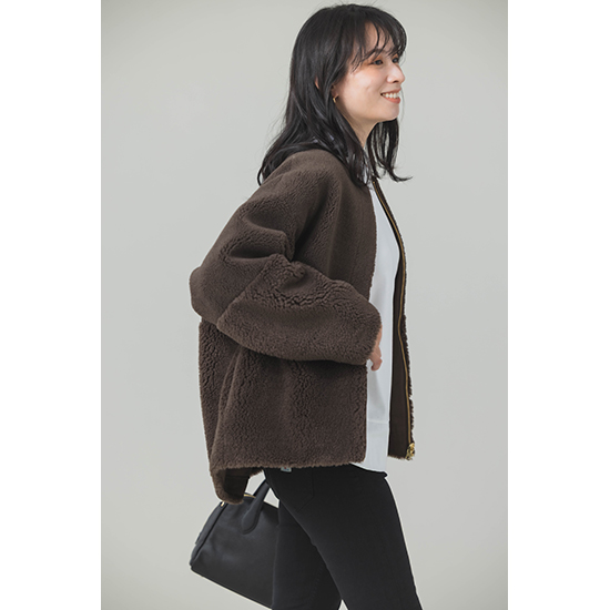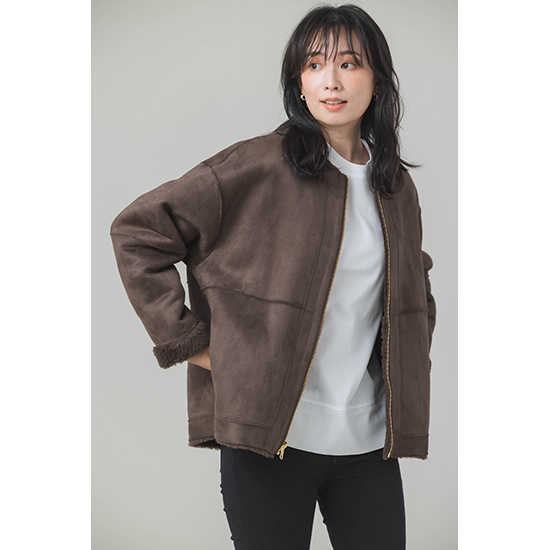 <p><font color=#c31941 size=3>去年大好評だったフェイクムートンが新色を加えて今年も登場。</font><br><br>ウール混のフェイクムートン素材を使用した、リバーシブルで着用可能なジップアップアウターです。<br>毛足の異なるボアを袖とウエスト辺りで切り替えた、表情感のある見た目になっており、スエード面を表にすると、<br>袖口からボアが覗くところもデザインポイントです。心地のいい温もりとリラックス感のあるシルエットで、<br>コーディネートに気軽に取り入れられるアイテムです。<br>今年はBROWNが新登場です。<br><br>※着用モデル 162㎝<br><br>■バイヤー・利根川リカコ profile<br>60代、2児の母。ABAHOUSEにてコーディネーター、インポートバイヤーとして関わる。<br>その後、雑誌STORY、HERSなどのライター、モデルを経て、現在HERS CLOSET、kokodePLUSのバイイングに携わる。<br>30代の頃から一貫してブラックコーデが好き。</p>