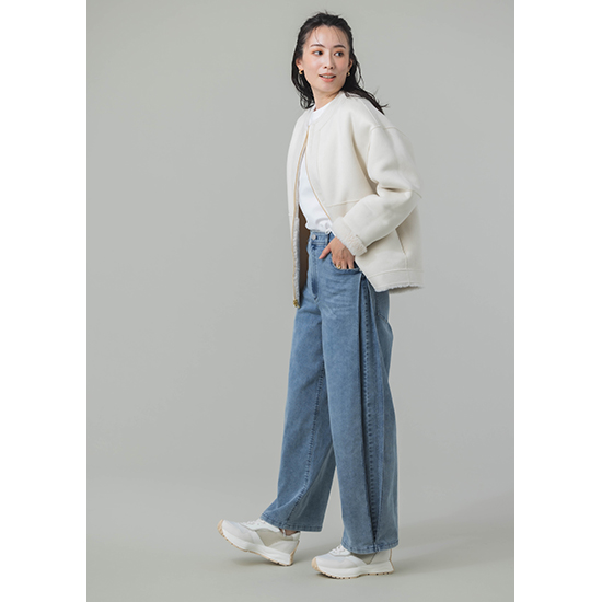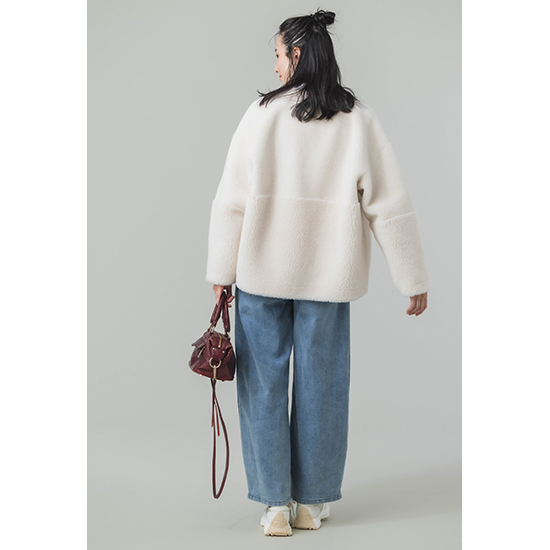 袖口からボアが覗くところもデザインポイントです。心地のいい温もりとリラックス感のあるシルエットで、