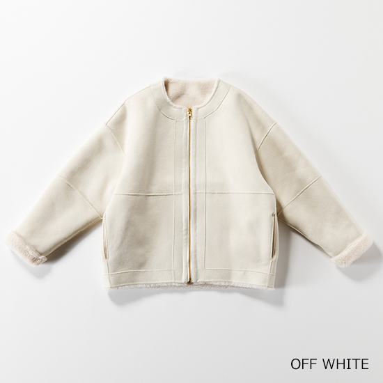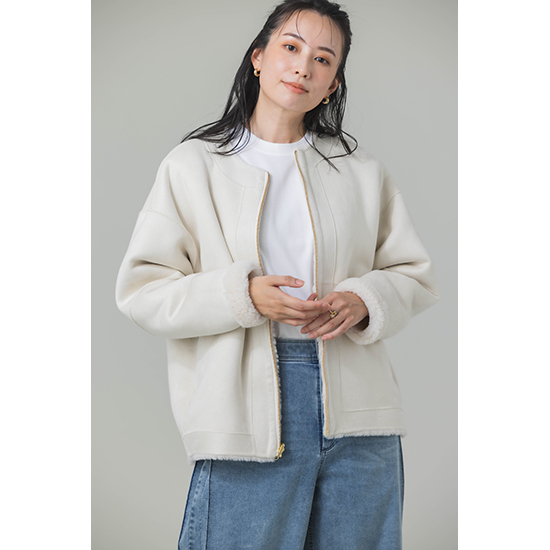 ウール混のフェイクムートン素材を使用した、リバーシブルで着用可能なジップアップアウターです。