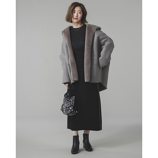 <p><font color="#c31941" size="3">リバーシブルのフェイクムートンコート</font><br />
