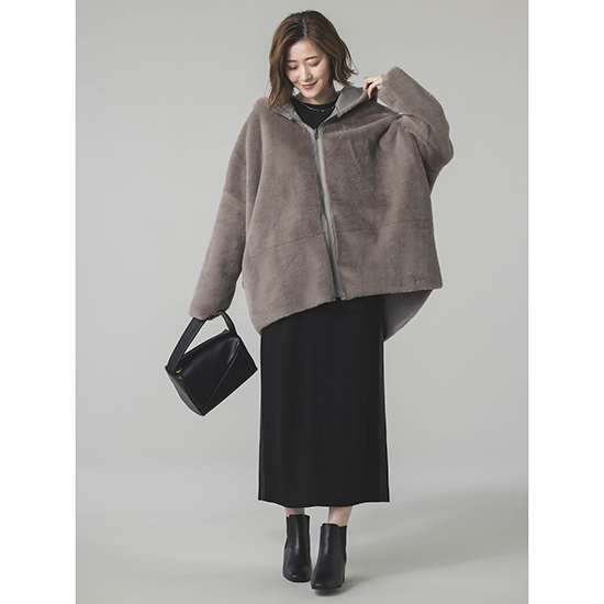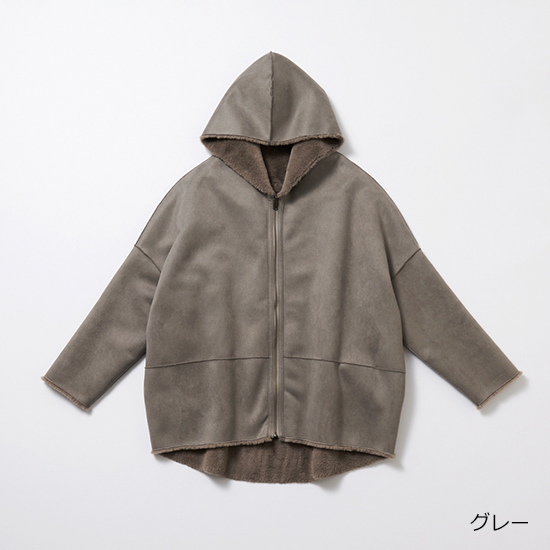 [Dignite collier]【リバーシブル】フェイクムートンフードコート