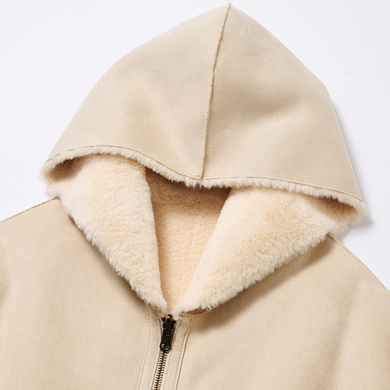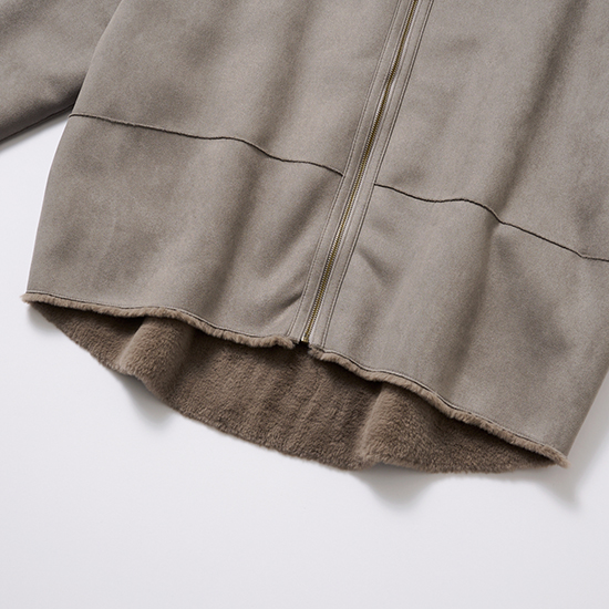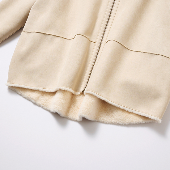 毛足のあるボア調と、ムートン調の生地のリバーシブル仕様で、