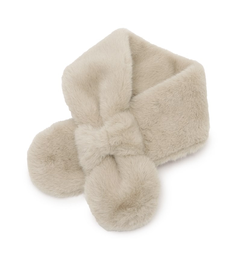 【デザイン】ふわふわのフェイクファー素材を使ったデザインティペット。リボンの形のループ部分に通して留めるデザイン。ニットやアウターに合わせてさりげなく着用できるのもポイント◎※照明の関係により、実際よりも色味が違って見える場合があります。また、パソコン・スマートフォンなどの環境により、若干製品と画像のカラーが異なる場合もございます。