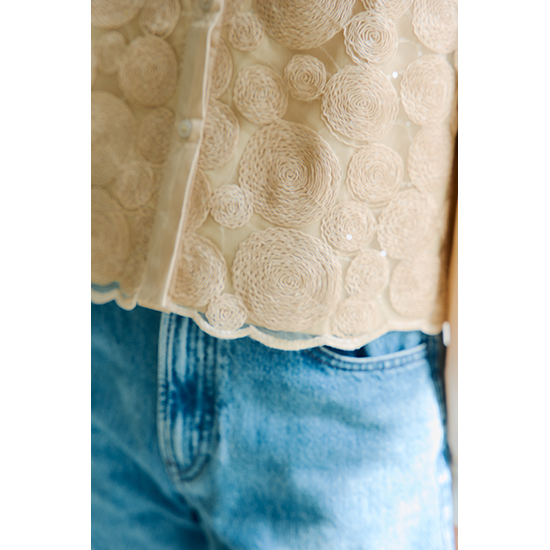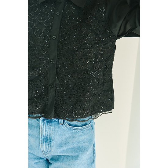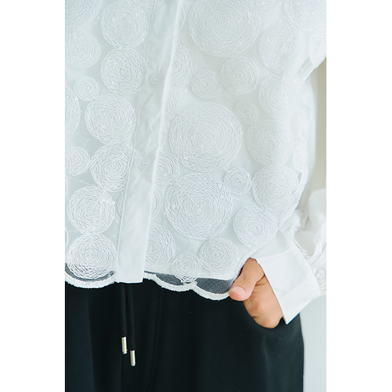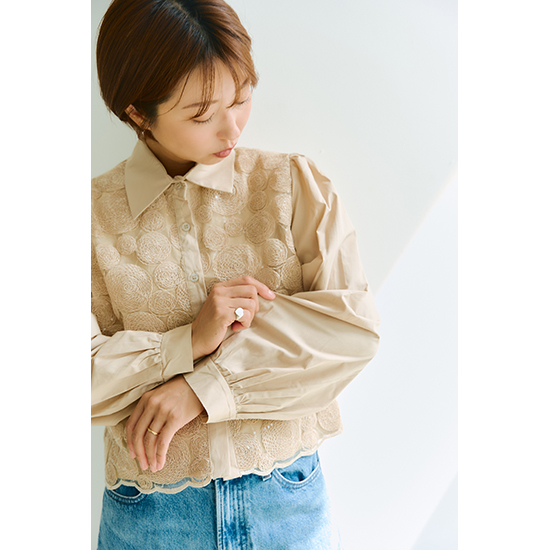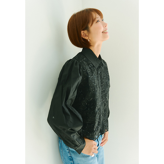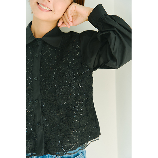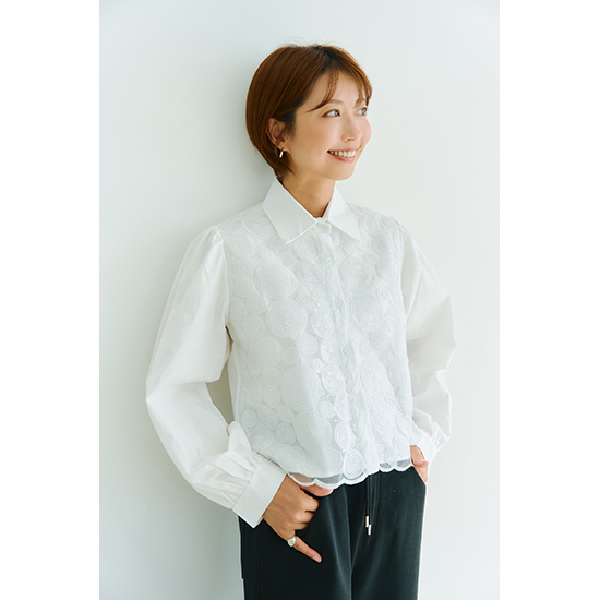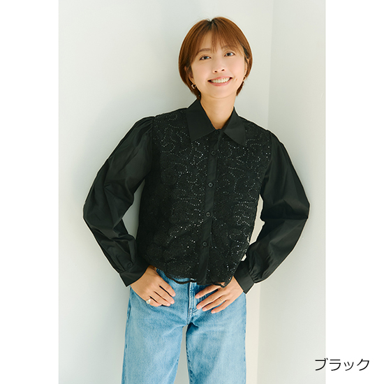 前身頃のレースが個性的なブラウス