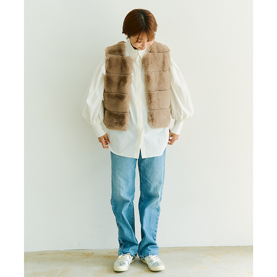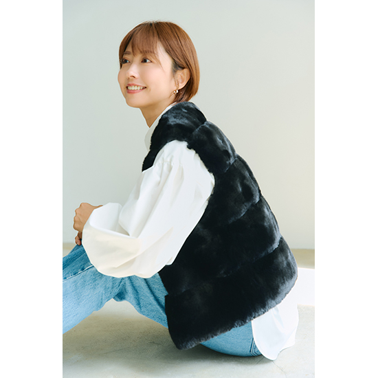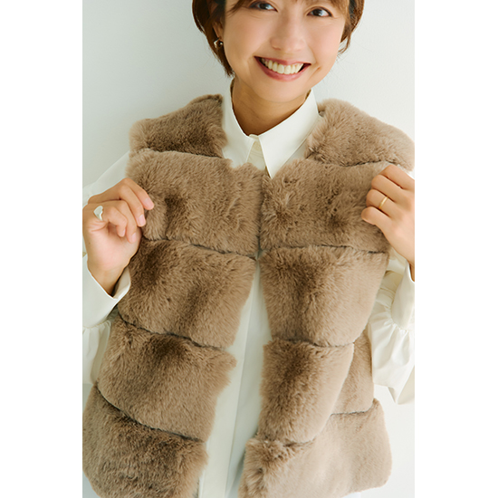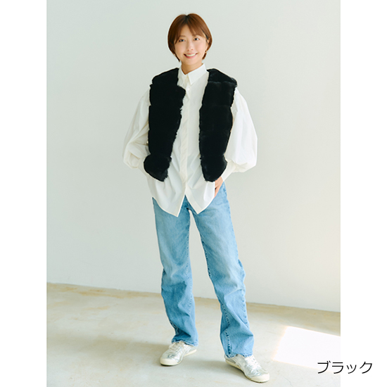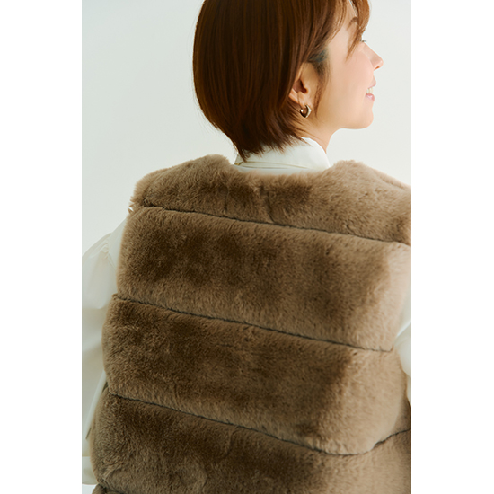 毛足の短いエコファー素材のベストです。手洗い可能です。