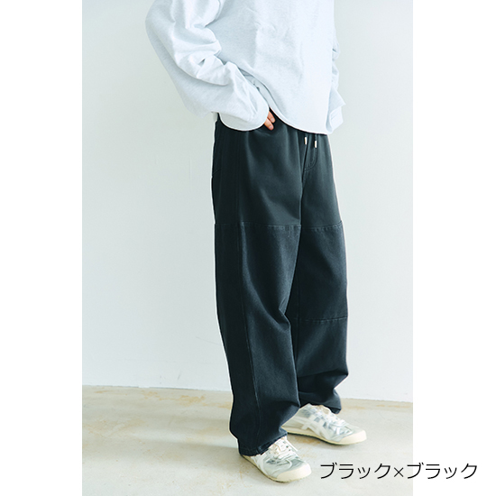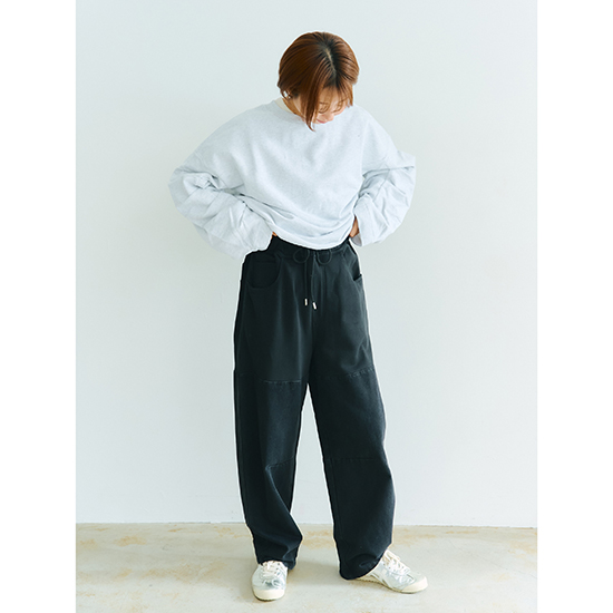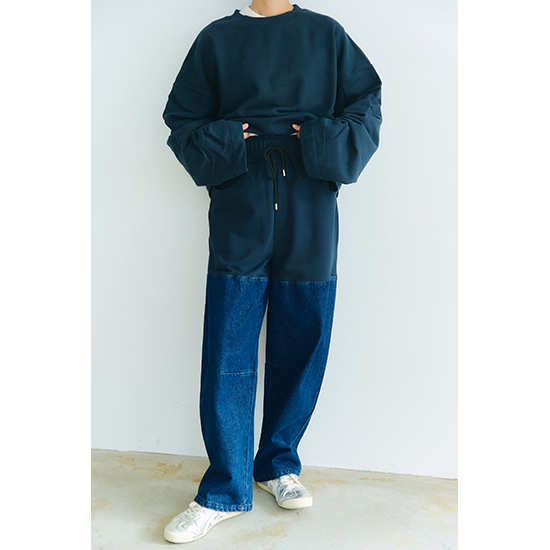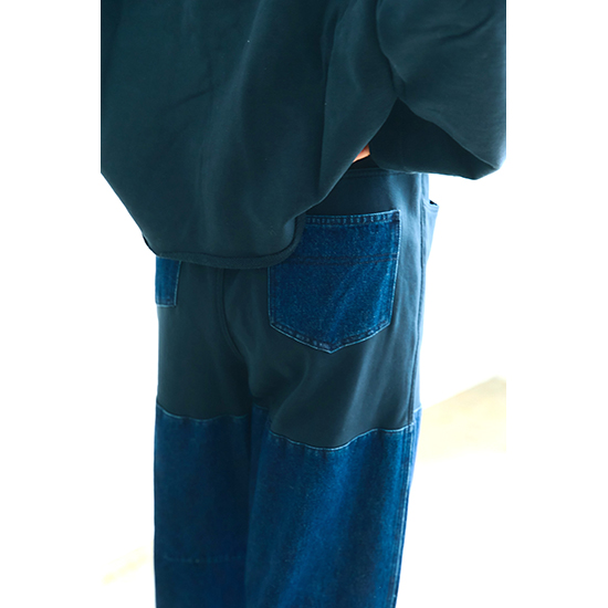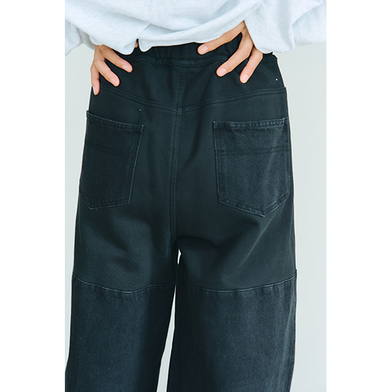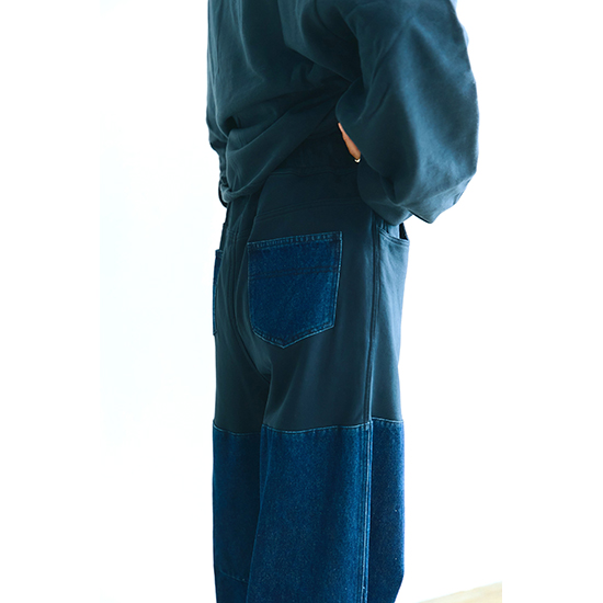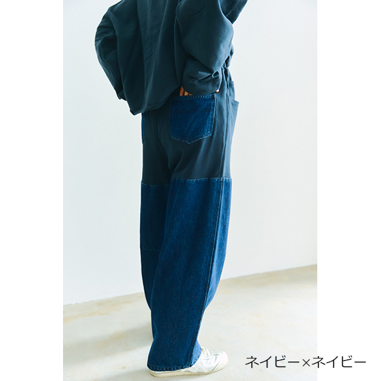 お腹部分は布帛なのでしっかり体型フォローができる上に、ヒップの下からがデニム素材だからは着心地も動きやすさも抜群です。