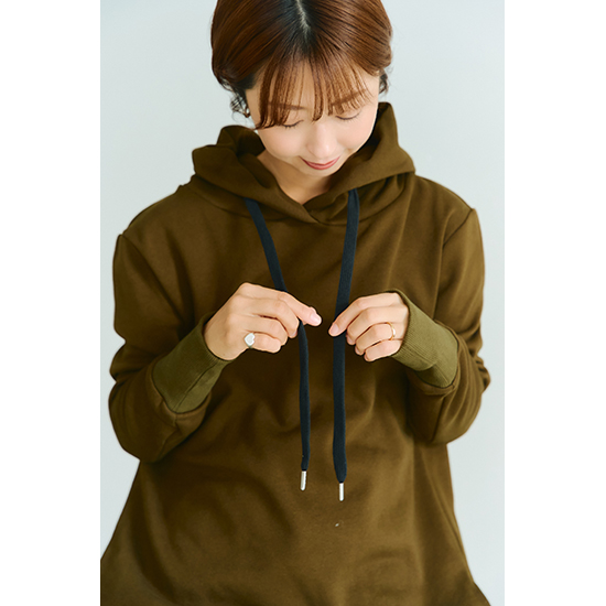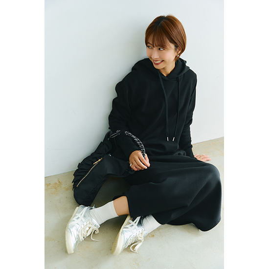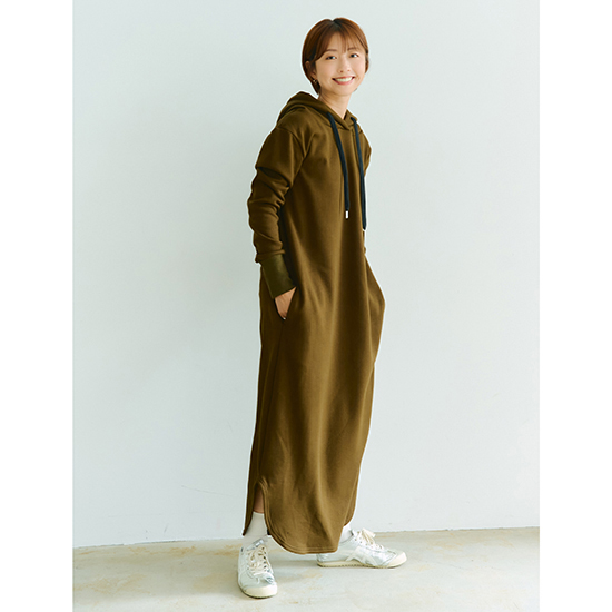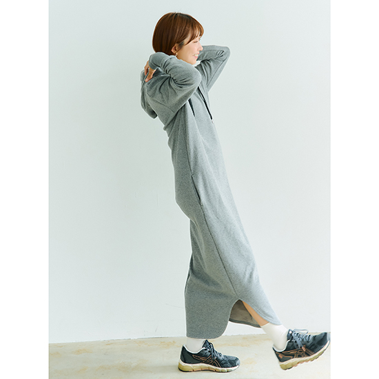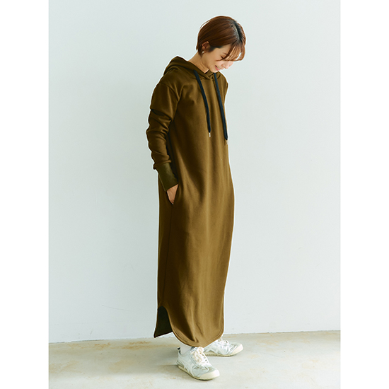 “日常をクラスアップする”大人のためのフーディワンピです。