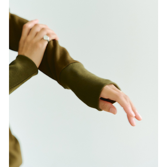 すこししっかり目のスムース素材はボディラインをひろいません。