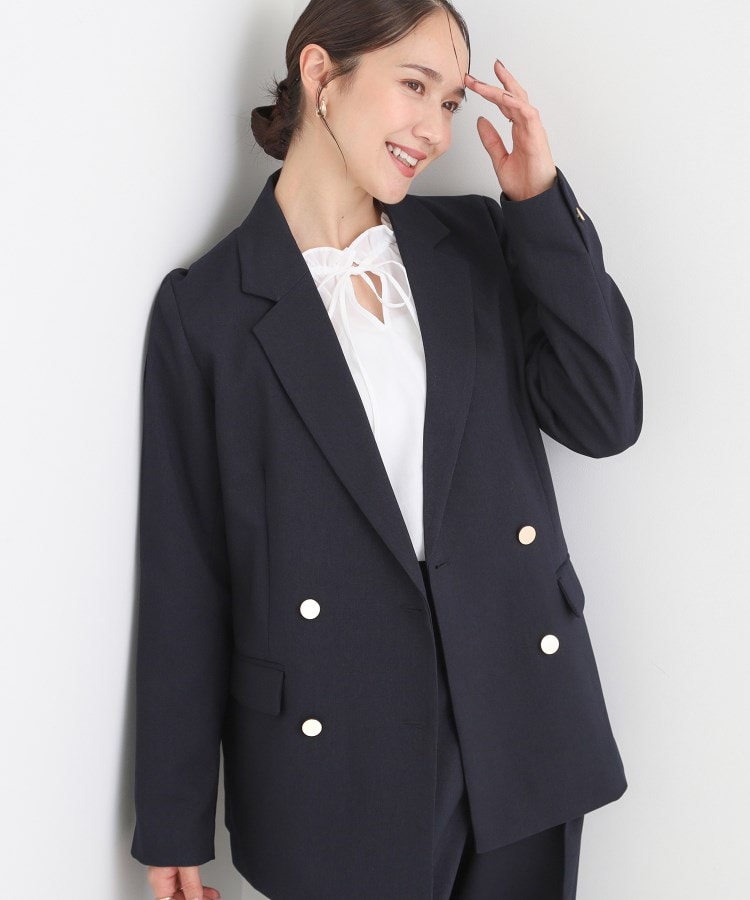 【デザイン】程よくゆとりのあるシルエットが今年らしいダブルブレストのテーラードジャケットです。かっちりしすぎずカジュアルすぎないシルエットと洗練されたアクセントを効かせるゴールドボタンがポイントできれい見えします。サッと羽織るだけできちんとサマになり、ちょっとしたお出掛けや通勤まで活躍します。【スタイリング】同素材のワイドパンツ合わせでセットアップとしての着用いただくのがおすすめ。きれいめなスカートやパンツと合わせて通勤やお出かけ着として。デニムなどのカジュアルなボトムに合わせてこなれたカジュアルスタイルにもマッチします。セットアップ可能品番:741-64015【素材】季節感を問わないドライタッチなツイル素材【仕様】・ポケット数:前×2・裏地:総裏仕立て※照明の関係により、実際よりも色味が違って見える場合があります。また、パソコン・スマートフォンなどの環境により、若干製品と画像のカラーが異なる場合もございます。