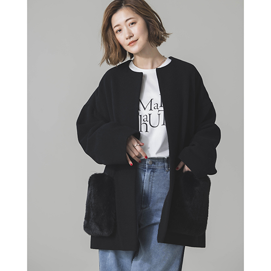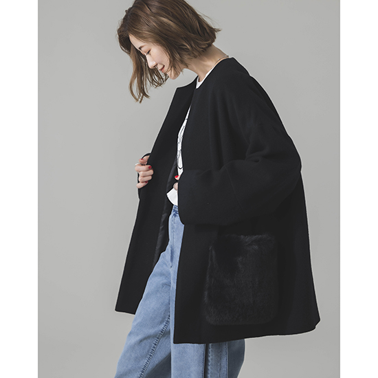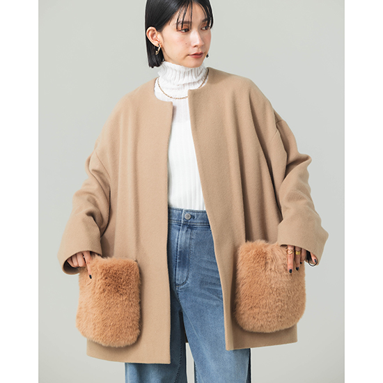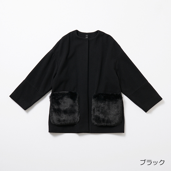 [Dignite collier]【2WAY】ファーポケットノーカラーコート