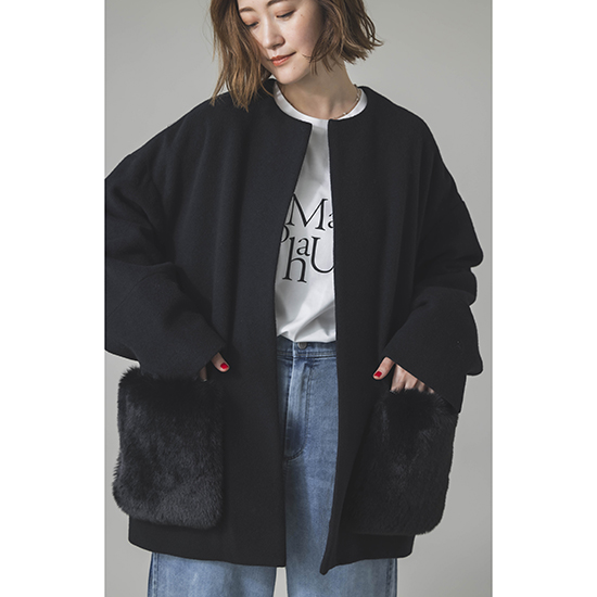 フォルムは極限までシンプルに、ポケットのファーが華やかさを演出します。