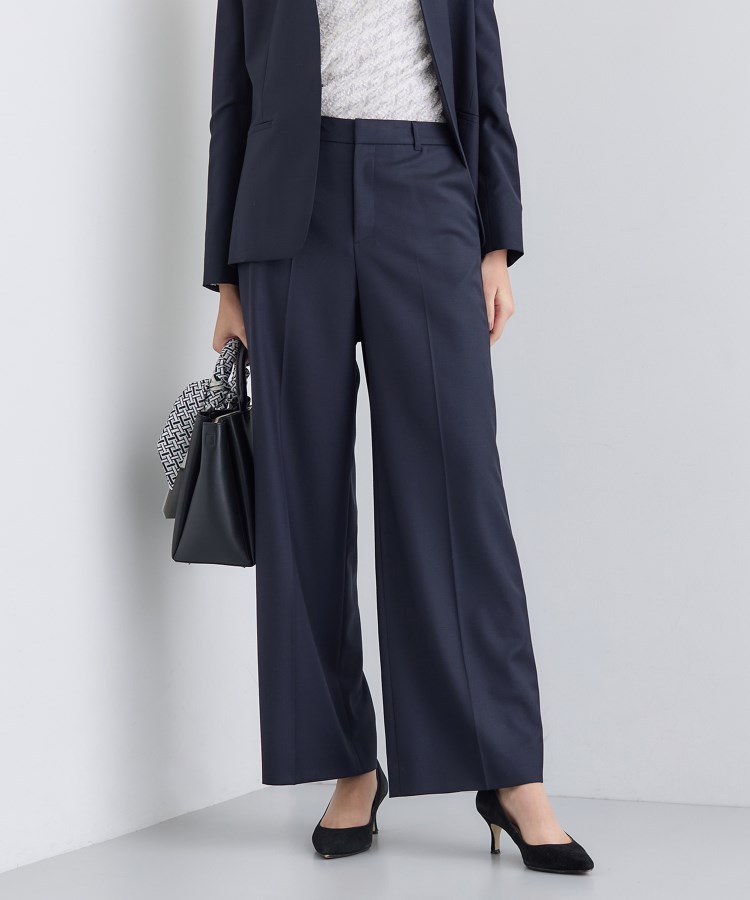 【日本製/スーツ/通勤】シルクウールストレッチ ワイドパンツ