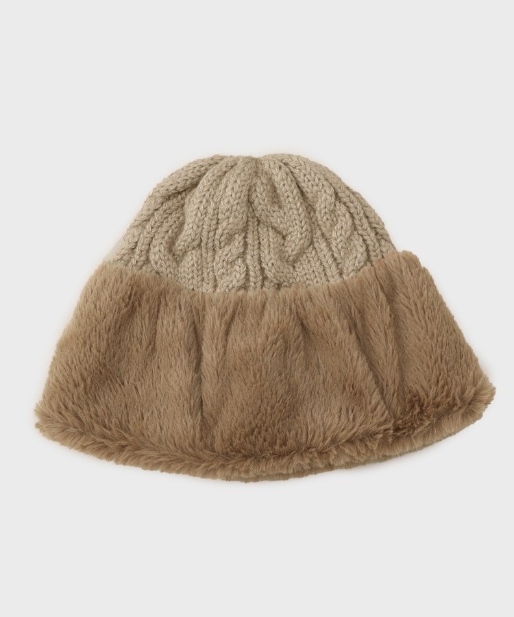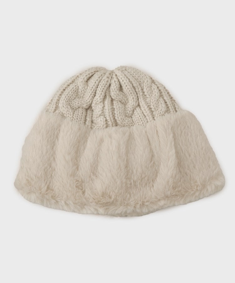 【デザイン】柔らかい被り心地で、ニットとフェイクファーの切り替えになったニット帽です。フェイクファー使いで、顔周りを華やかにしてくれます。※照明の関係により、実際よりも色味が違って見える場合があります。また、パソコン・スマートフォンなどの環境により、若干製品と画像のカラーが異なる場合もございます。