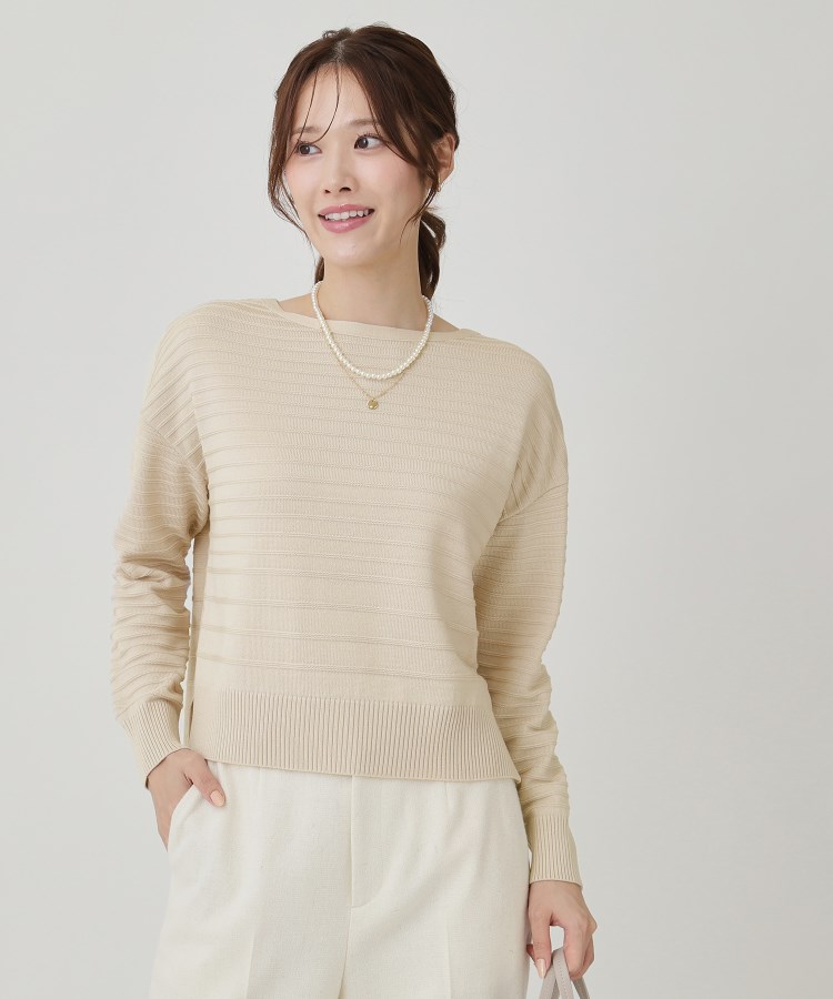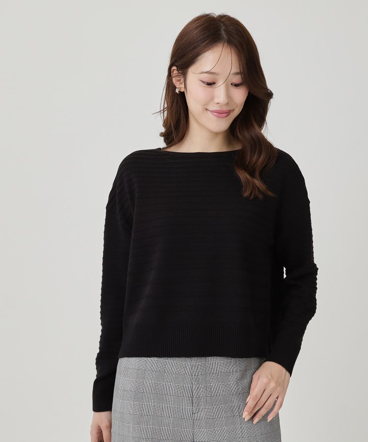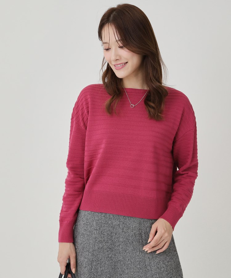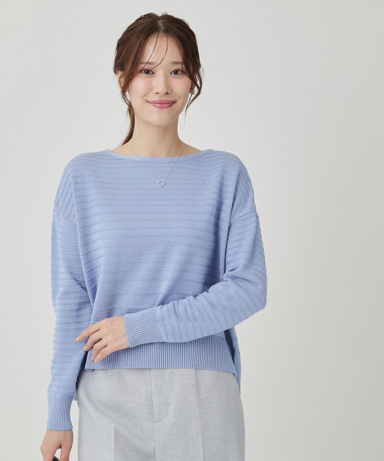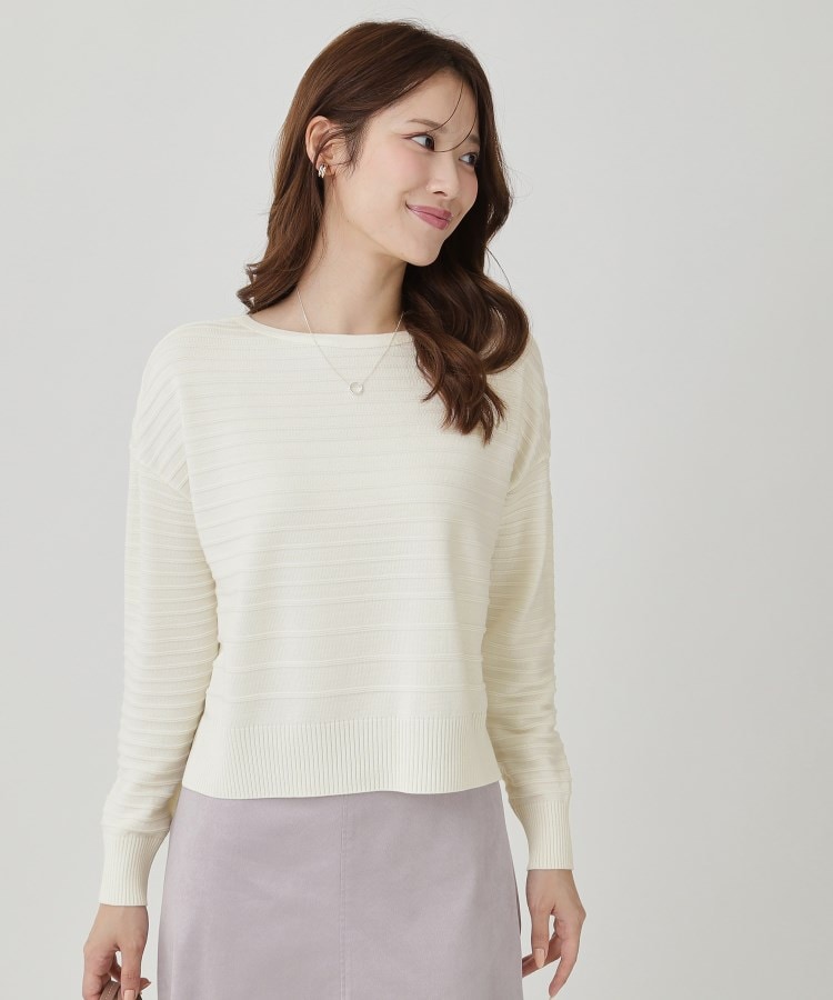 【手洗い可/日本製】地柄ボーダーのニットトップス