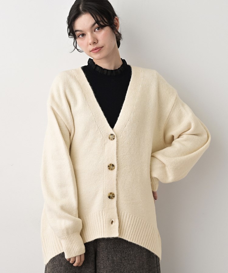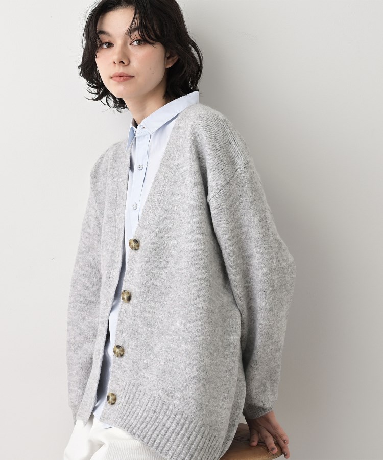 【デザインポイント】ふんわり上質な風合い。手軽に着回せるヤク見えVネックニットカーディガン。ゆったりとしたシルエットでリラックスムードを演出します。すっきりとした前立てが上品さをプラス。カジュアルときれいめ問わず合わせやすいデザインです。【スタイリングポイント】シャツやブラウスに羽織ってオフィスカジュアルに。デニムやワイドパンツと合わせて抜け感のあるリラックススタイルに。【素材ポイント】柔らかく膨らみのある風合いを表現した糸です。ヤクウールのようなふんわり感とウォーム感を持ちながら、扱いやすさと軽さを兼ね備えています。チクチク感が少なく肌触りも滑らかで、デイリーに活用いただけます。※照明の関係により、実際よりも色味が違って見える場合があります。また、パソコン・スマートフォンなどの環境により、若干製品と画像のカラーが異なる場合もございます。