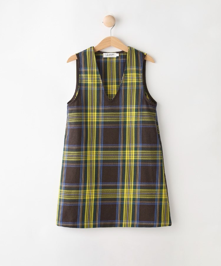 【デザインポイント】チェック柄のジャンバースカート。定番のチェック柄。(F58-74032の大人のスカートと親子リンクコーデが楽しめます)【スタイリングポイント】チェック柄で存在感があるので、トップスはシンプル目なシャツやカットソー合わせがおすすめです。メンズ、レディース品番と柄のリンクコーデが可能です。【素材ポイント】ポリエステルながらスパン糸を使用しているのでマットな質感の素材です。【仕様】・ポケット数:横×2・裏地なし※照明の関係により、実際よりも色味が違って見える場合があります。また、パソコン・スマートフォンなどの環境により、若干製品と画像のカラーが異なる場合もございます。