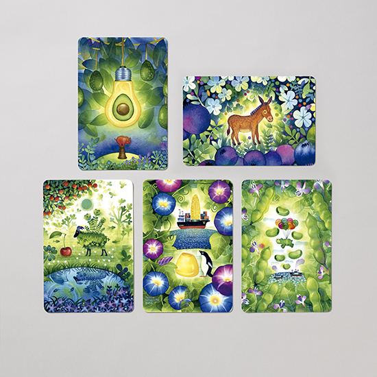 ロングセラーの詩集絵本『生きてるってどういうこと?』(ことば/谷川俊太郎・絵/宮内ヨシオ)に掲載されている全イラスト18枚と「にじいろパンダ ルンルン」ポストカードがセットになった、合計19枚のポストカードセット。