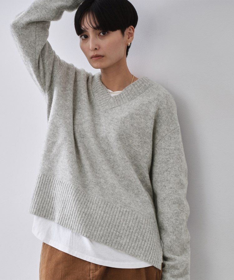 毛混の糸を贅沢に使用した、ミドルゲージのVネックニット【デザイン】・一枚着としても、インナーとレイヤードしても着用可能なミドルゲージのVネックニット。・リラクシーなワイドシルエットで、太めのリブがデザインアクセントに。・両脇にスリットデザインを入れ、抜け感のあるシルエットが楽しめます。・きれいめなボトムに合わせたオンタイムはもちろん、デニムや素材感のあるスカートなどに合わせたオフスタイルにもおすすめです。【素材】・高混率の毛混で、ふんわりと軽く、弾力性のある素材感が魅力です。・ハンドウォッシャブルでご自宅での手洗いが可能です。※照明の関係により、実際よりも色味が違って見える場合があります。また、パソコン・スマートフォンなどの環境により、若干製品と画像のカラーが異なる場合もございます。