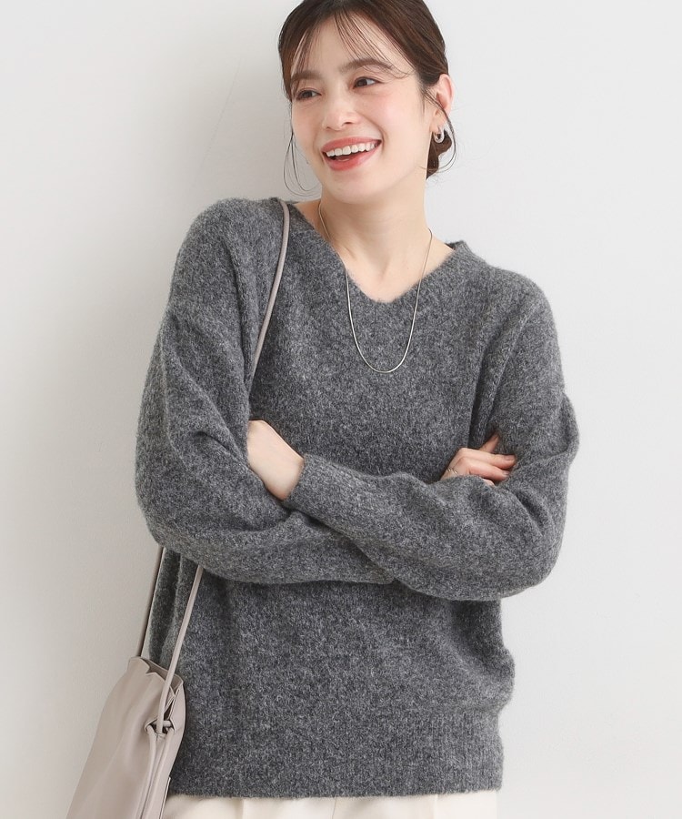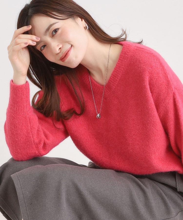 【デザイン】ふんわりとした肌ざわりが心地よい、シンプルなVネックニットです。Vネックが首元をすっきり見せてくれて、抜け感のある印象になります。ドロップショルダーでリラックス感があり、程よいゆとりのあるシルエットです。【スタイリング】デニムやワイドパンツと合わせるだけで、大人カジュアルな着こなしができ、シャツやタートルをレイヤードしてもバランスよく決まり、着回ししやすいアイテムです。シンプルデザインですのでナロースカートやフレアスカートなどにも合わせていただけます。【素材】柔らかくふわふわ感が特徴的な素材を使用しています。※照明の関係により、実際よりも色味が違って見える場合があります。また、パソコン・スマートフォンなどの環境により、若干製品と画像のカラーが異なる場合もございます。