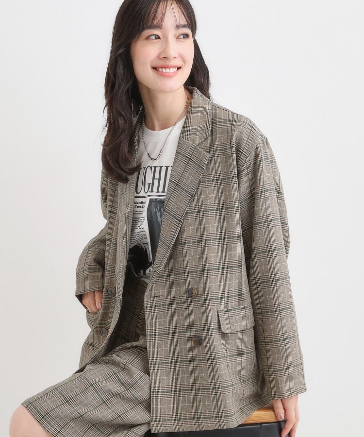 【セットアップ可】チェック柄 ダブルブレストテーラードゆるジャケット