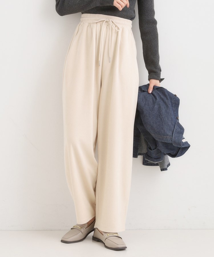 【デザイン】やわらかなスエード調の素材を、トレンドのカーブパンツシルエットで仕上げました。シンプルで合わせやすいながらも、今年らしいカーブシルエットにしています。スエードのような素材感が上品でありつつ、カジュアルな日常使いにもぴったりです。シンプルなアイボリー、チャコールグレーの2色展開です。【スタイリング】ざっくりとしたシャツやニットと合わせた大人カジュアルなスタイルがオススメです。ブーツやアクセサリーを合わせた女性らしいコーディネートが今年らしく素敵です。【素材】やわらかなスエード調の素材を使用しています。【仕様】・ポケット数:横×2・ウエスト総ゴム・裏地なし※オフホワイト(003)はやや透け感があるため、インナーの着用をおすすめします。※照明の関係により、実際よりも色味が違って見える場合があります。また、パソコン・スマートフォンなどの環境により、若干製品と画像のカラーが異なる場合もございます。#CutieBlonde#Cutie#cutieblonde#cutie#キューティブロンド#キューティ