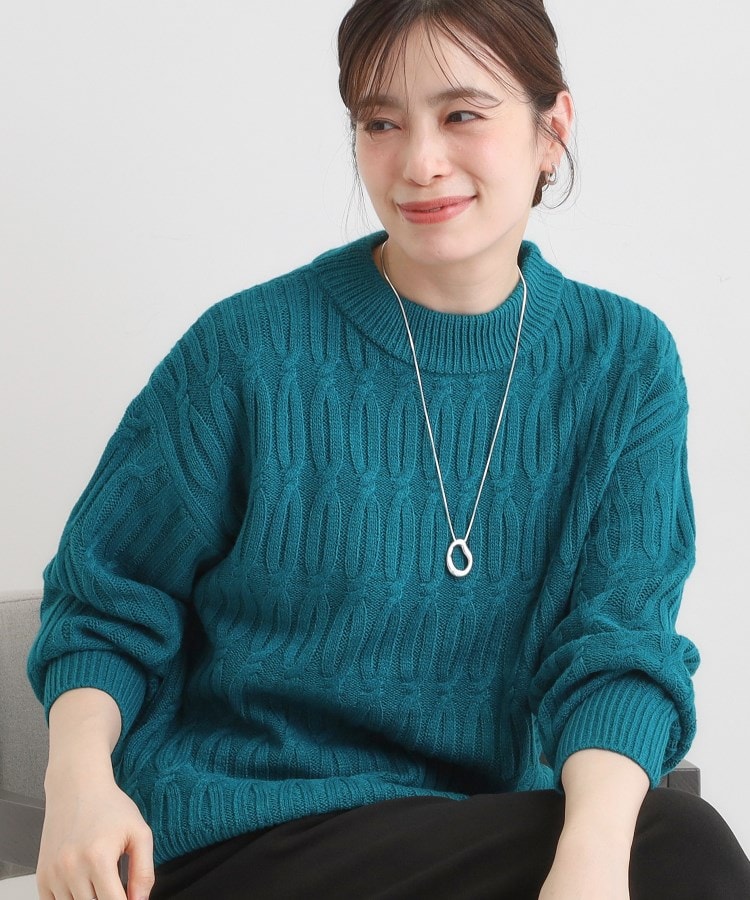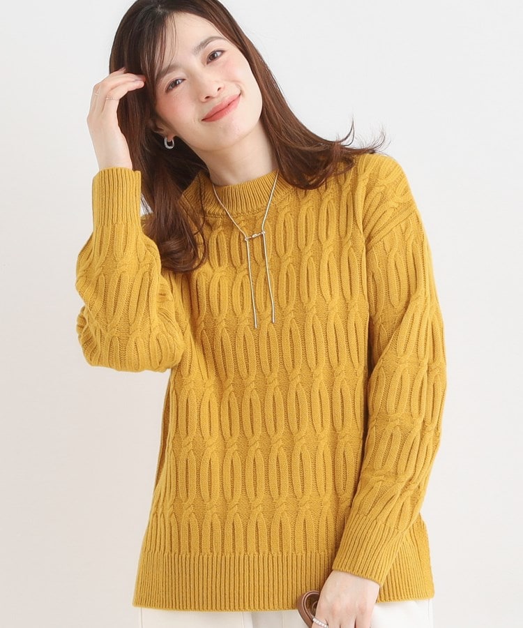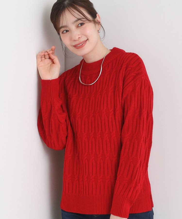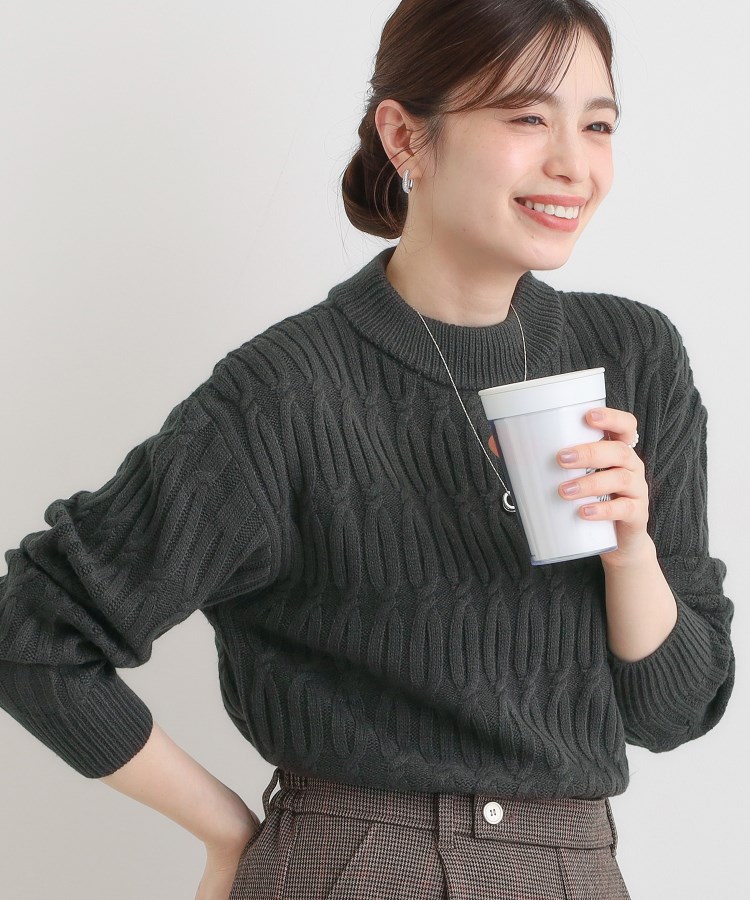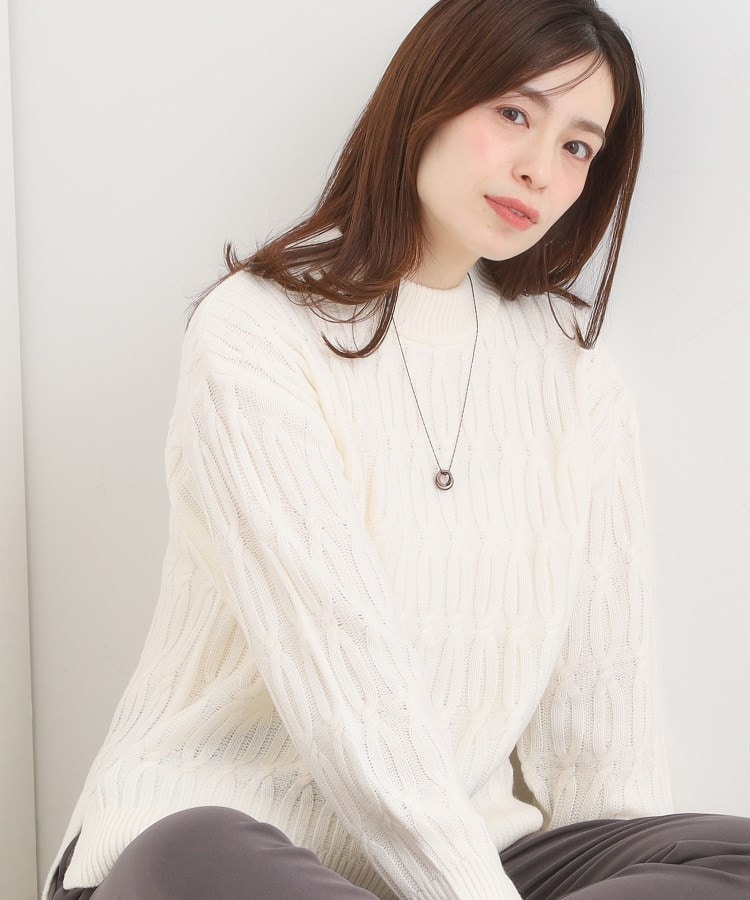 毛玉になりにくいニットシリーズにケーブル柄が登場【デザイン】毛玉になりにくい糸ですっきりしたケーブル柄で編み立てたプチハイネックセーター。ドロップショルダーでゆるっと着れて、抜け感ある大人カジュアルスタイルが叶います。長すぎず短すぎず、いろんなボトムとあわせやすい着丈も魅力です。【スタイリング】ボトムはパンツでもスカートでも合わせやすい着丈で、テーパードパンツなどすっきり見えなら通勤カジュアルコーデにも。ワイドパンツならデイリー~休日のお出かけ等にも。シンプルなケーブル柄なのでデニムボトムと合わせると大人っぽいカジュアルスタイルが決まります。【素材】ざっくり感が表現できる、アクリル糸を使用。毛玉になりにくい加工を施しています。※照明の関係により、実際よりも色味が違って見える場合があります。また、パソコン・スマートフォンなどの環境により、若干製品と画像のカラーが異なる場合もございます。