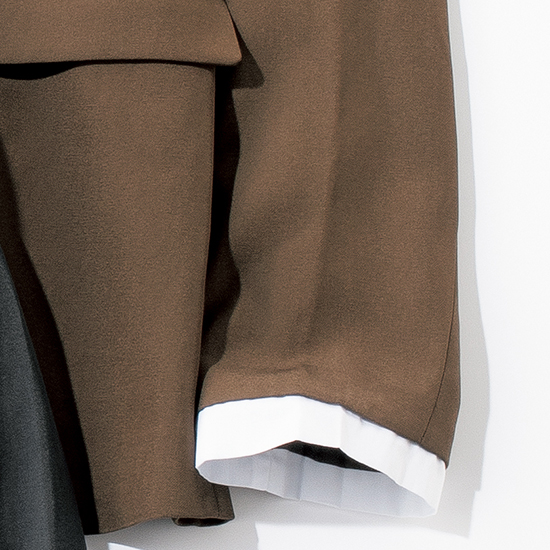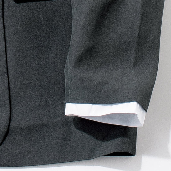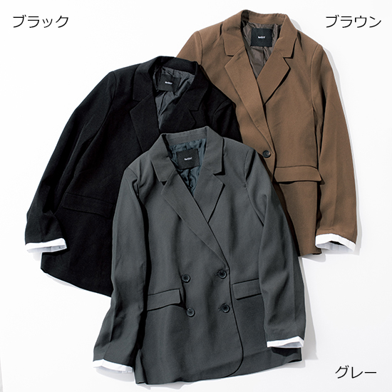 袖口からシャツが覗くように見える、レイヤード風デザインがポイントのテーラードジャケット。