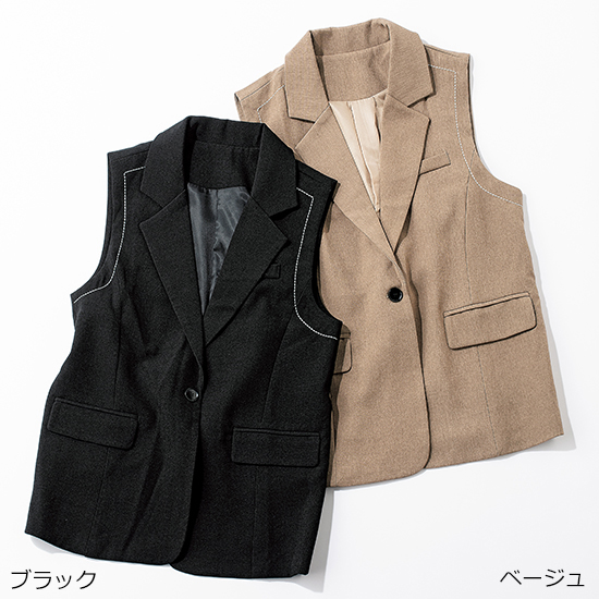 ステッチが効いているので、かっちりしすぎないテーラードデザイン。<br />