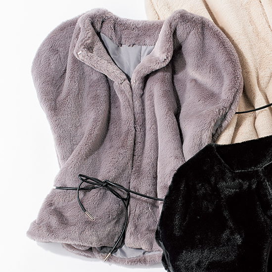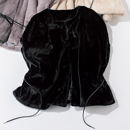 コンパクトな丈だからデイリー使いでも気恥ずかしくないファーポンチョ。