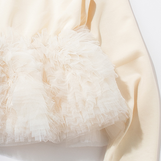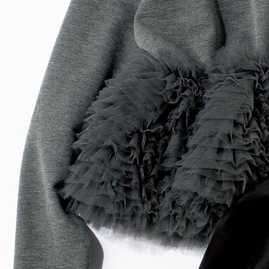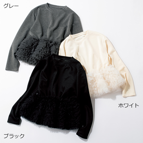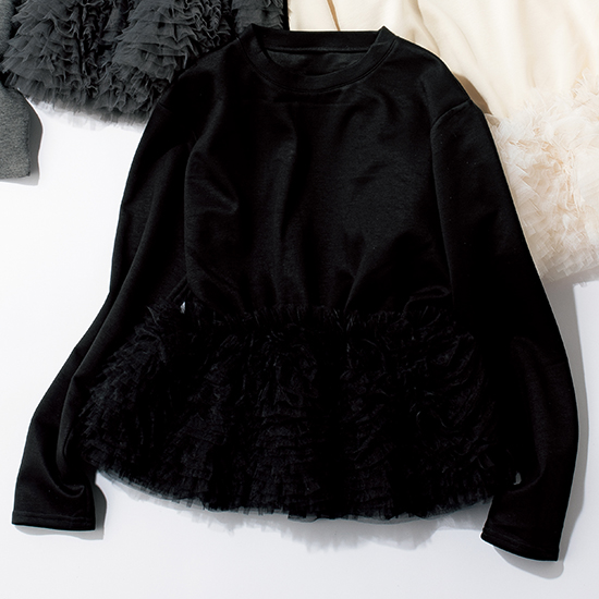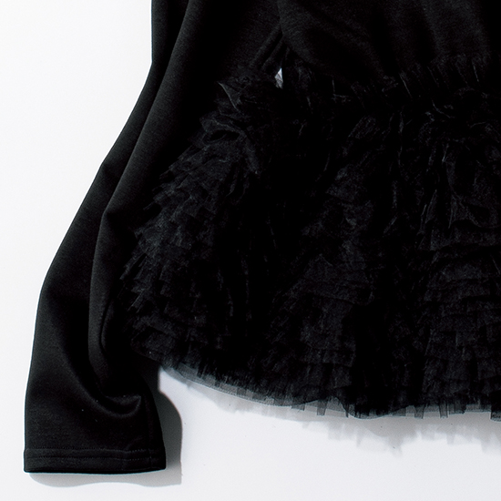 <p><font color=#c31941 size=3>冬のイベントを盛り上げるチュール使い</font><br><br>裾にたっぷりついたフリルがペプラム状に広がる上品見えトップス。<br>ボディはカットソー生地なのでデニムを合わせてカジュアルに着ることも可能です。<br><br>自宅での手洗い可。<br><br>【POINT】<br>・裾のフリルがシンプルコーデにほんのり甘さを加える。<br><br><font size="3">BLANC(ブラン)</font><br>40代にちょうどいい甘服をラインナップ<br><br>堺 優史(MOUSTACHE)(人物)、清藤直樹(静物)モデル/徳澤直子【170㎝】<br>ヘア・メーク/陶山恵実、スタイリスト/中西雛乃</p>