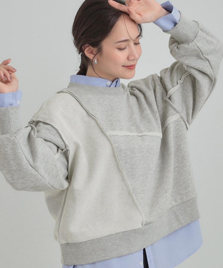 【デザイン】トレンドのリメイク風スウェット。クロップド丈で仕上げており、ワイドパンツからナロースカートなど幅広いアイテムとバランス良く合わせて頂けます。4色展開とカラーバリエーション豊富にご用意しています。【スタイリング】ワイドデニムと合わせてカジュアルに合わせたスタイルや、ナロースカートやスラックスと合わせた大人なスタイルにも合わせやすい1枚です。クロップド丈なので、ワイドパンツやフレアスカートのようなシルエットのアイテムと相性良くご着用できます。【素材】やわらかな裏毛素材です。※照明の関係により、実際よりも色味が違って見える場合があります。また、パソコン・スマートフォンなどの環境により、若干製品と画像のカラーが異なる場合もございます。#CutieBlonde#Cutie#cutieblonde#cutie#キューティブロンド#キューティ