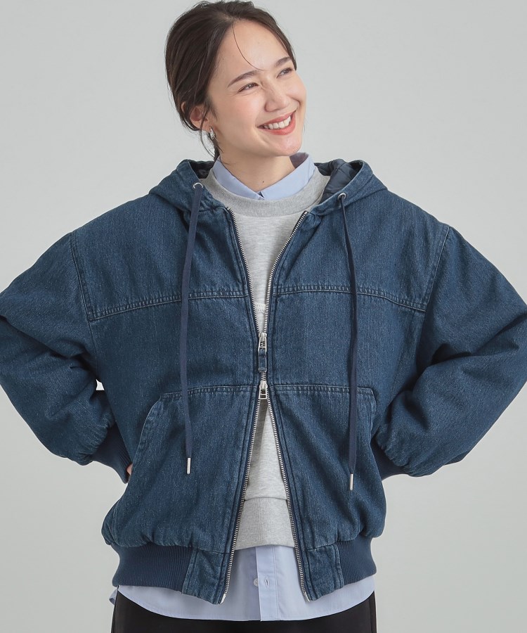 【デザイン】デニムの表地に中綿キルトを合わせたハイブリッドなフーディ―アウター。リブ締めの今年らしいブルゾンです。オーバーサイズなので、中に着るものを選ばないシルエット。【スタイリング】カジュアルスタイルにも、甘めのスカートやニットなどにも合わせやすいブルゾン。お尻にかぶる丈感で体型カバーも叶う1枚。ゆったりシルエットが今年らしい1枚です。【素材】表地はしっかりとしたデニム素材を使用しています。中綿をキルティングしたブルゾンです。袖口と裾にはリブを使用しています。【仕様】・ポケット数:横×2・裏地あり※照明の関係により、実際よりも色味が違って見える場合があります。また、パソコン・スマートフォンなどの環境により、若干製品と画像のカラーが異なる場合もございます。#CutieBlonde#Cutie#cutieblonde#cutie#キューティブロンド#キューティ