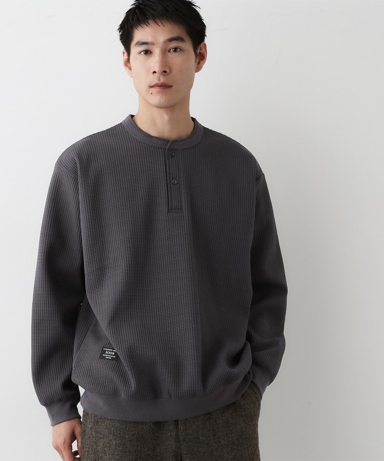 【デザインポイント】ソロテックスというポリエステルのストレッチ繊維を使用したヘンリーネックカットソー。1枚でも中に丸首ロンTをレイヤードしても素敵です。【スタイリングポイント】カジュアルなデニムやカーゴパンツ、きれい目のテーパードパンツ等合わせやすいデザインのTシャツです。【素材ポイント】ソロテックスというポリエステルのストレッチ繊維を使用した裏毛素材。※照明の関係により、実際よりも色味が違って見える場合があります。また、パソコン・スマートフォンなどの環境により、若干製品と画像のカラーが異なる場合もございます。