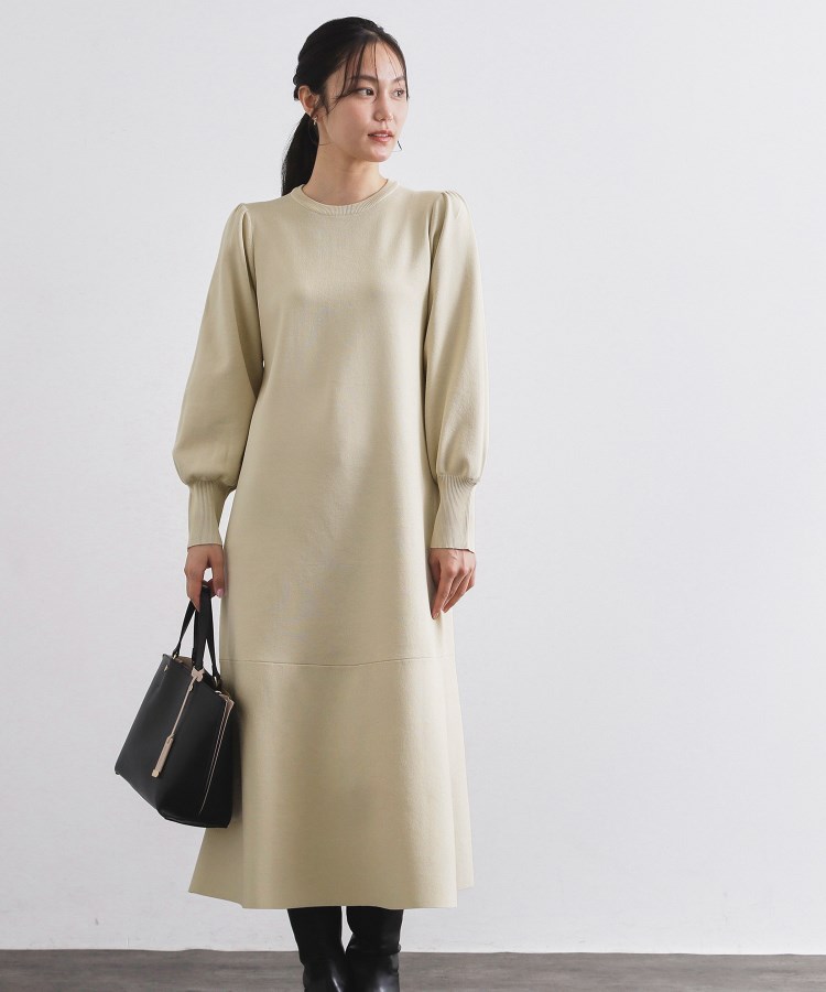 裾のフレアデザインが華やかなニットワンピース【デザイン】・裾をフレア切替えにしたデザインが華やかなニットワンピース。・裾に向かってAラインシルエットにすることで、身体に張り付きにくく、すっきりと見える一枚に仕上げています。・肩や袖口にギャザーを入れて、お袖に程よいボリューム感をプラスしております。・ネック後ろはボタン開きになっており、ゴールドのボタンもアクセントにしております。【素材】・ポリエステル100%のニット素材で、きれいめに着られるすっきりとした表面感と、軽い着心地がポイントです。・マシンウォッシャブル、アンチピリングでお手入れも簡単です。【仕様】・ポケットなし・裏地なし※照明の関係により、実際よりも色味が違って見える場合があります。また、パソコン・スマートフォンなどの環境により、若干製品と画像のカラーが異なる場合もございます。
