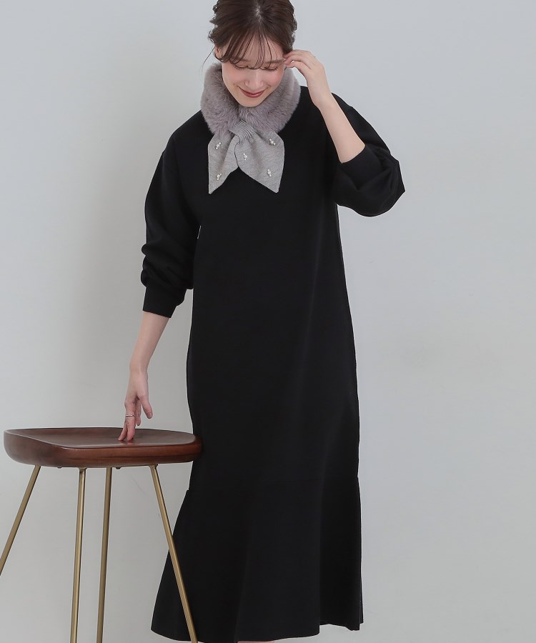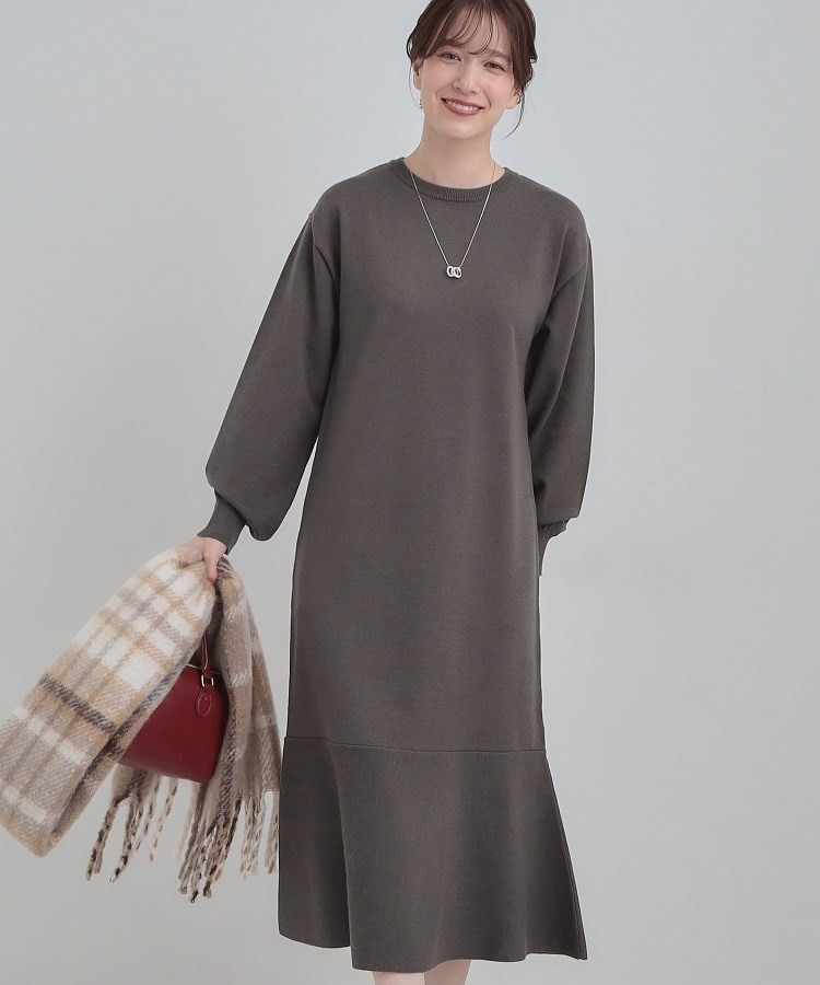 スタイルがすっきりに見える 裾マーメイドニットワンピース