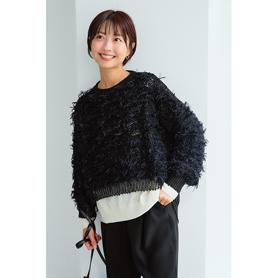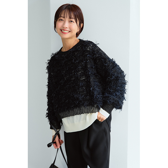 濡れ羽色のような艶めき、大人のためのレイヤードニット