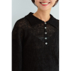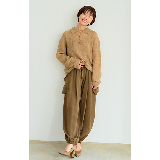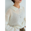 今期のトレンドのポロ衿デザインのニットとなります。少しの透け感と素材の温かい雰囲気が女性らしさを演出しております。