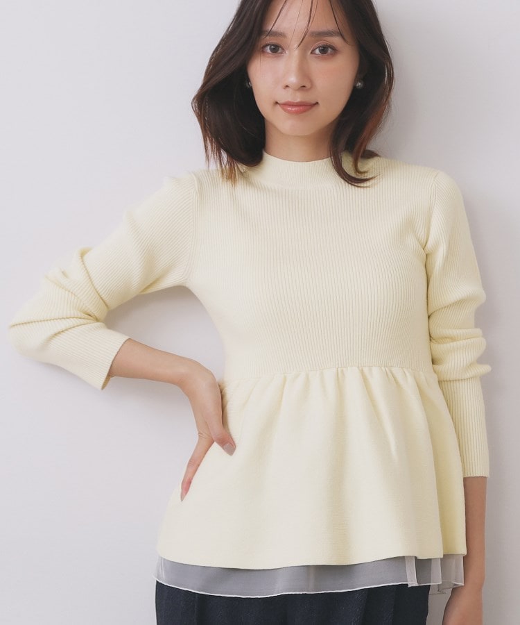 ペプラムチュールレイヤードニット【洗濯機OK】
