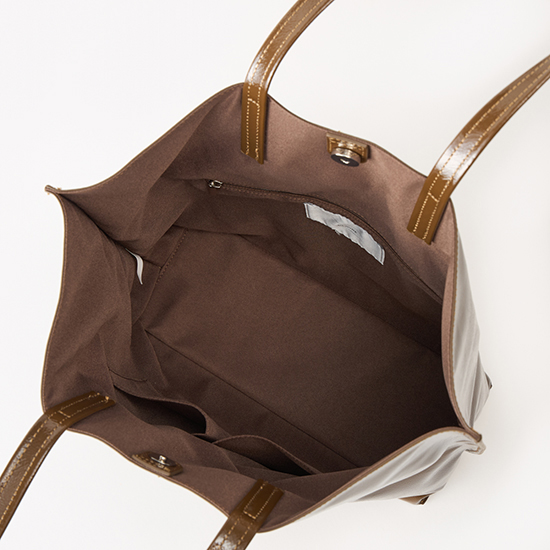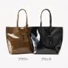 エナメル仕上げの上品な光沢が洗練された印象のトートバッグ。