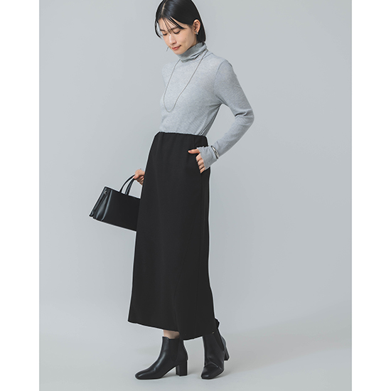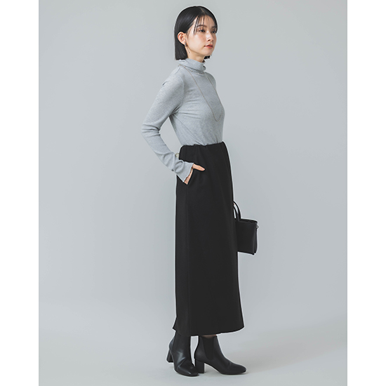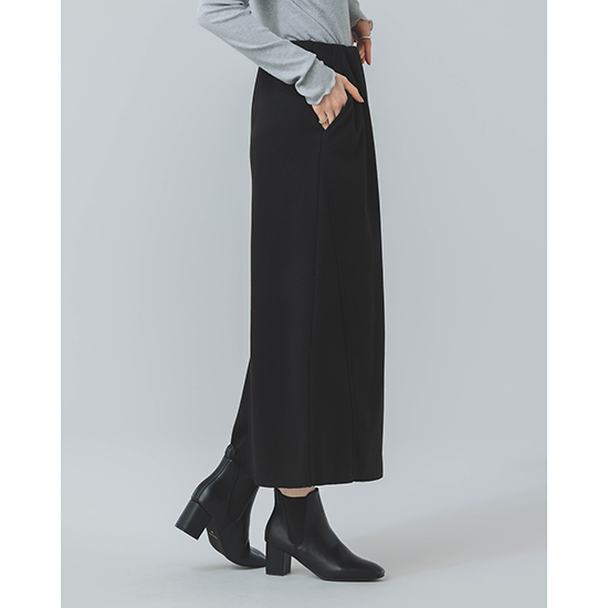 ウール調に仕上げた快適なジャージ素材なので、着やすさも十分なイージーケアのスカート。